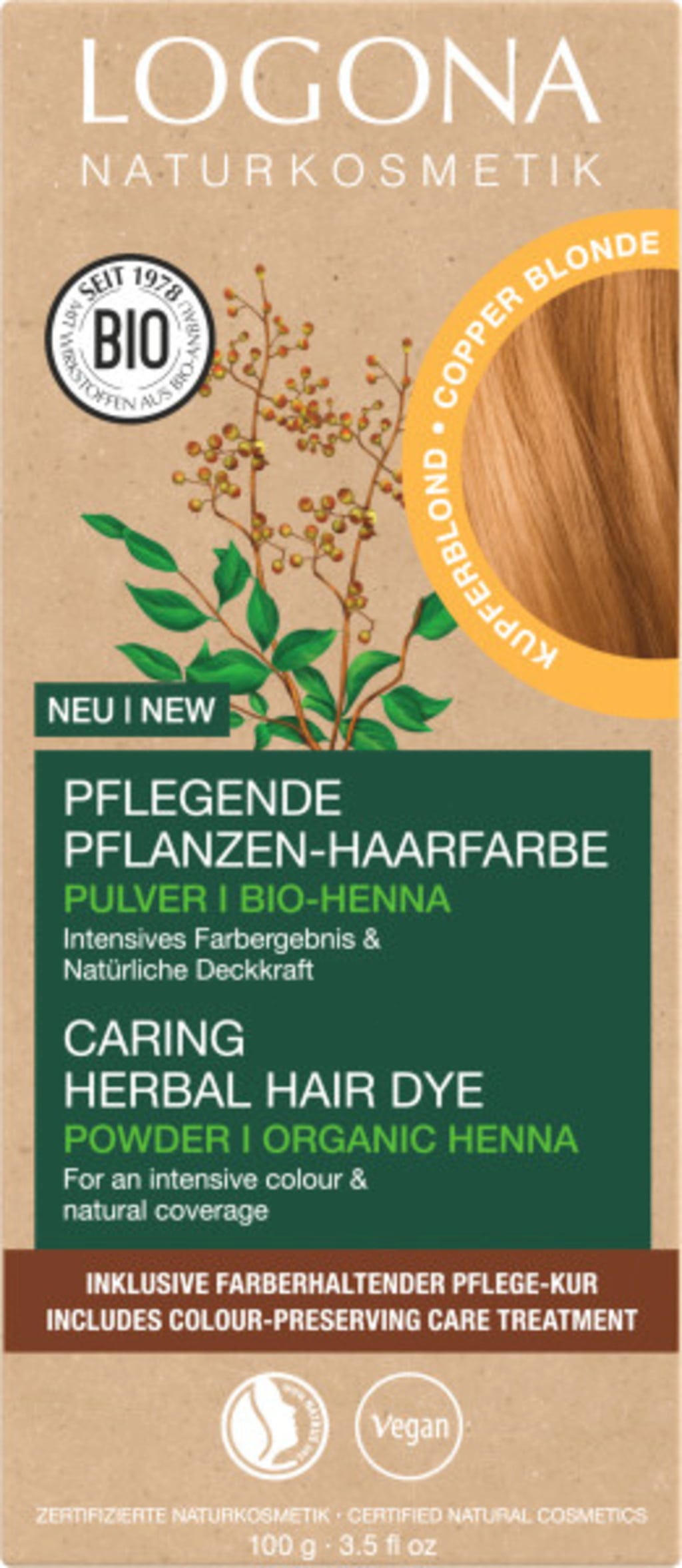 LOGONA Plantebasert hårfarge pulver Kobberblond, 100 g