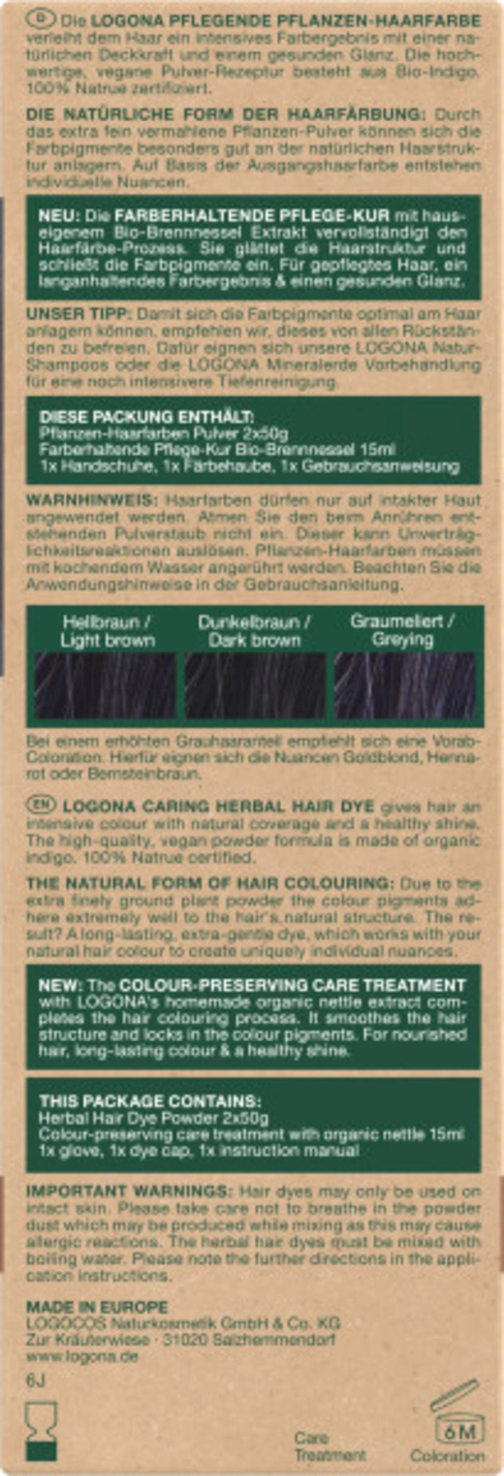 Den inkluderte fargebevarende pleiekuren med økologisk brennesle kompletterer fargeprosessen: Den glatter ut håret og innkapsler fargepigmentene, slik at fargen varer lenger.