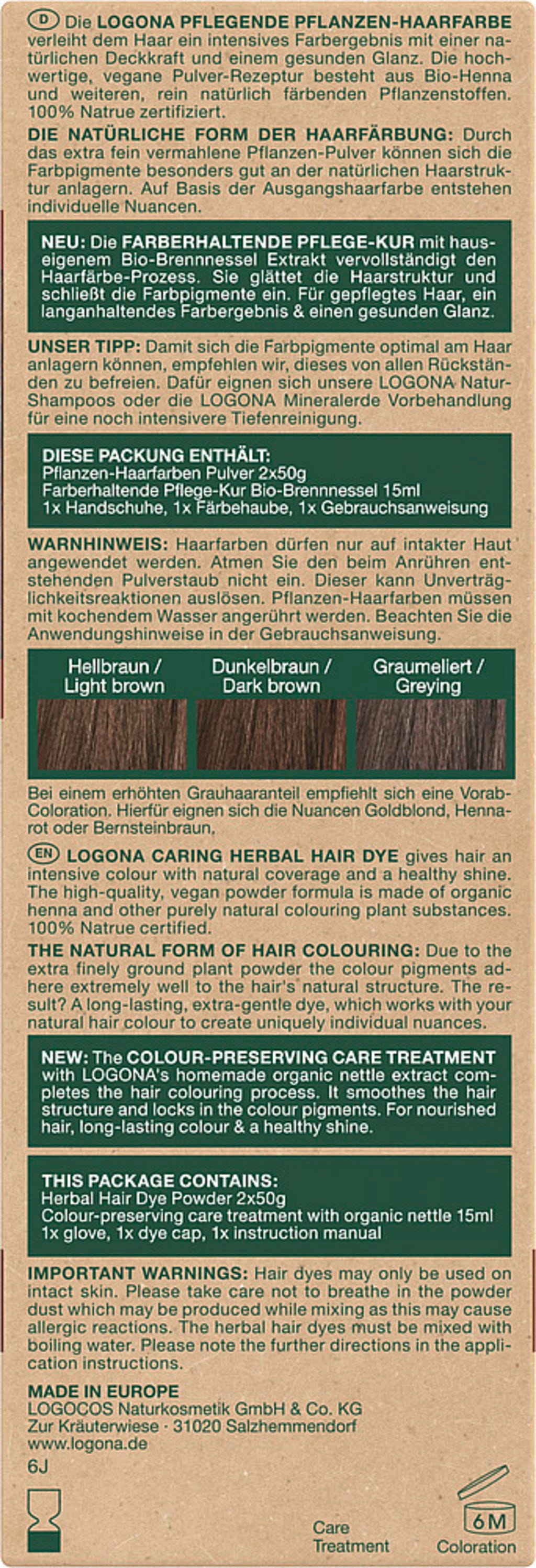 LOGONA Plantehårfargepulver Sjokoladebrun, 100 g