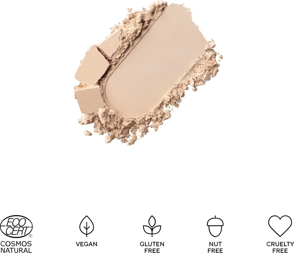 CI 77019, Calcium Carbonate, Caolin Clay, Lauroyl Lysine, Oryza Sativa (Rice) Starch, Zinc Stearate, Silicia, Caprylic/Capric Triglyceride, Argania Spinosa (Argan) Kernel Oil, Caprylyl Glycol, Cellulose, Tocopherol (Vitamin E), Glycerin Soja Oil, Aroma, Magnesium Stearate, Glycolipids, Aqua, Glycerin, Polyglyceryl-3 Diisostearate, Oryza Sativa Extract, Oryza Sativa (Rice) Germ Extract, Ascorbyl Palmitate (Vitamin C), Linalool, Geraniol, Linalyl Acetate, Vanillin, CI 77491 (Iron Oxide), CI 77492 (Iron Oxide), CI 77499 (Iron Oxide)
