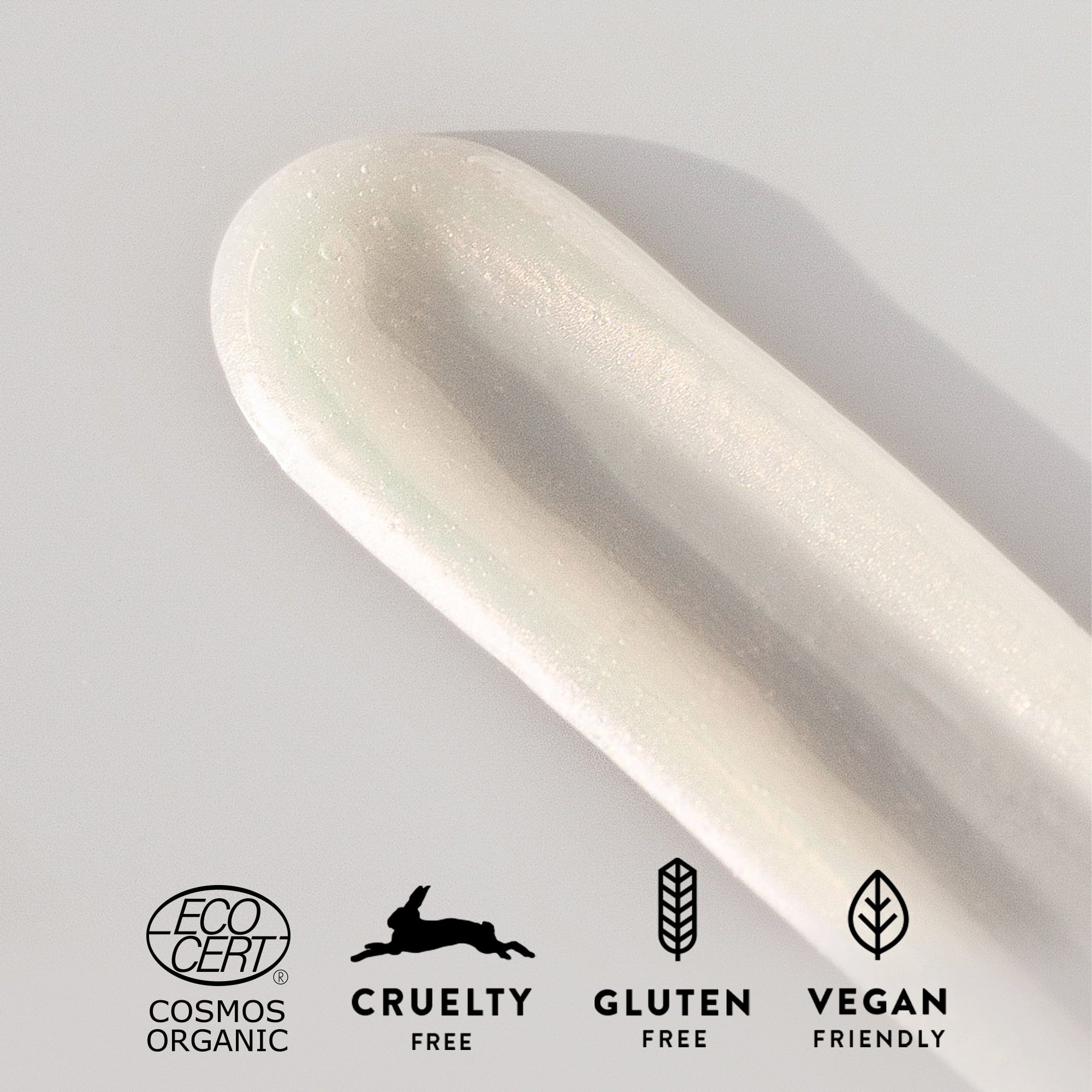 Caprylic/Capric Triglyceride, Glycerin, Helianthus Annus (Sunflower) Seed Oil, Aqua, Sucrose Laurate, Sucrose Palmitate, Aroma, Alcohol, Tocopherol (Vitamin E), CI 77891 (Titanium Dioxid), CI 77019, Oenothera Biennis (Evening Primrose) Oil, Prunus Amygdalus Dulcis (Sweet Almond) Oil, Glycosphingolipids, Glycolipids, Benzyl Salicylate, Citral, Limonene