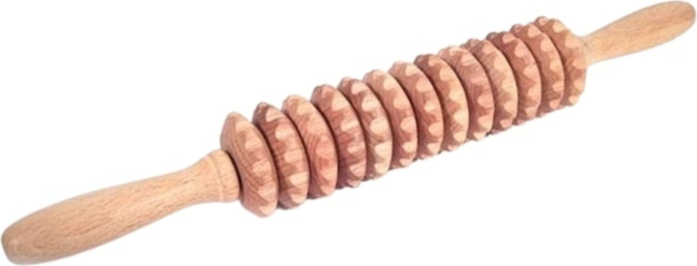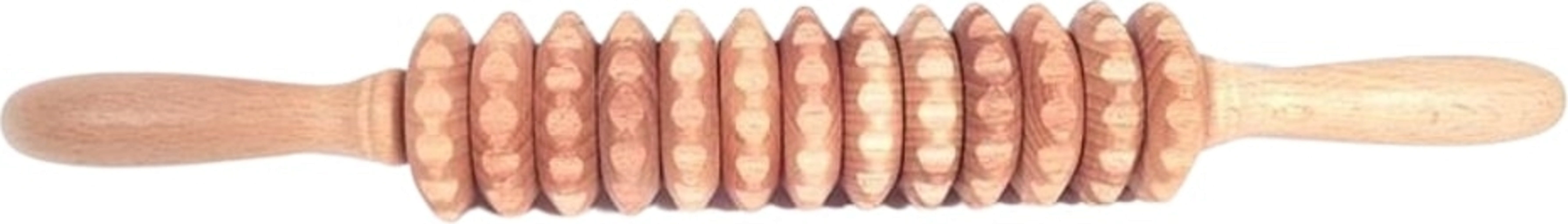 Massasjerullen i verdifull bøk løsner musklene og strammer opp huden. Det brukte treverket er svært robust og har en lang levetid.