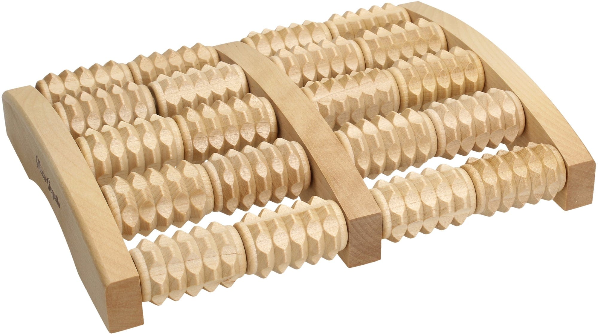 Det trebaserte fotmassasjeapparatet består av små trevalser og tilpasser seg perfekt til fotens kontur takket være sin buede form. Disse små valsene trykker på viktige punkter på føttene eller håndflatene og bidrar dermed til å redusere stress og øke energi.
