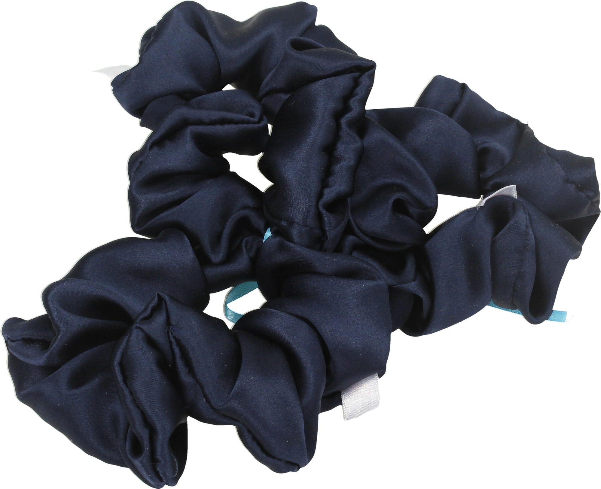 De blå-svarte scrunchies er spesielt skånsomme mot håret takket være silkestoffet, da de hindrer statisk elektrisitet i håret.