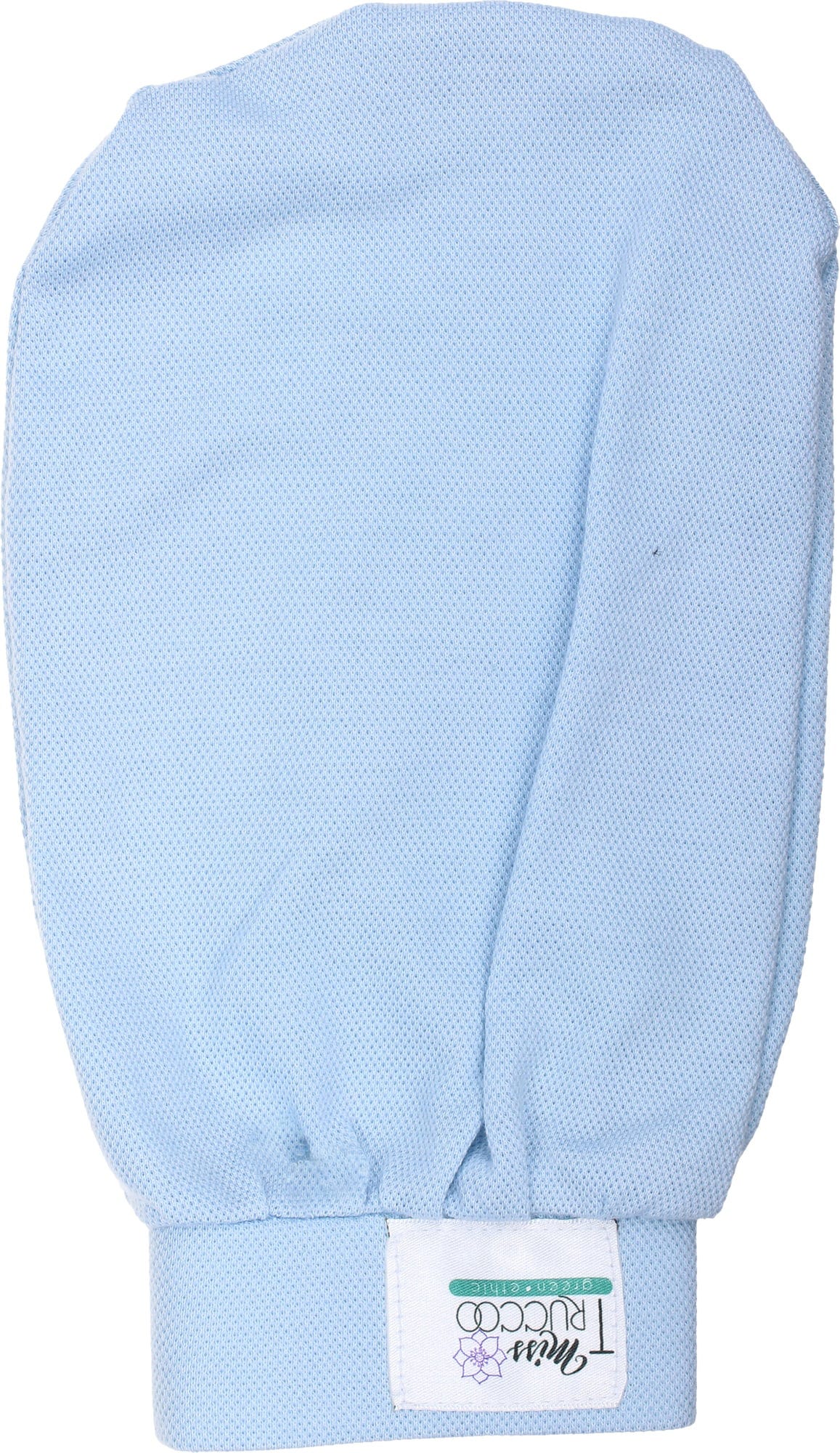 Denne hansken er håndlaget av sertifisert økologisk bomull. Den er ideell for å eksfoliere kroppen raskt og enkelt. Den kan brukes med bare vann eller med et passende produkt. Hansken kan brukes både til ansikt og kropp og fjerner døde hudceller samt skitt.