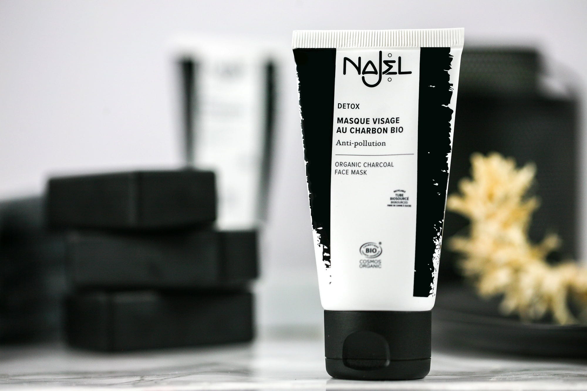 Denne ansiktsmasken renser huden takket være økologisk aktivkull, som er ideell for urenheter. Den absorberer overskuddssebum, samt døde hudceller og forurensinger, uten å tørke ut huden. Aktivkull fra amla er en god rengjører, virker astringerende, klarende, poreforfinende, og gir en strålende glød. Formelen inneholder også økologisk laurbærolje, samt kaolin og blomster-vann fra tysk kamille. Takket være plantebasert glyserin blir huden også fuktet.