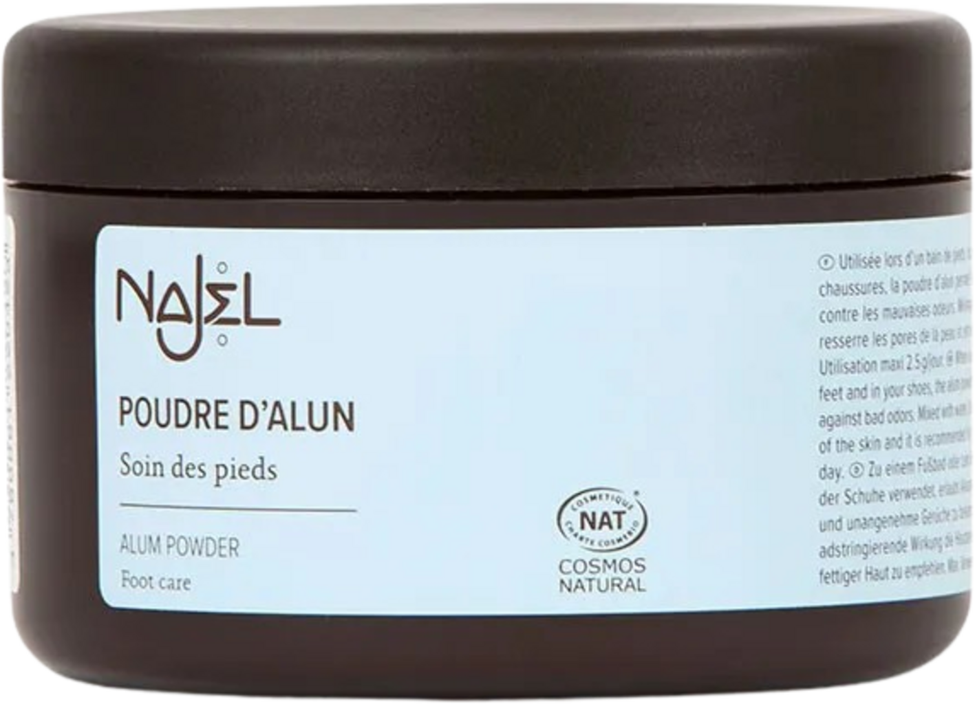 Dette krystallstein-pulveret fra Najel er laget av naturlige alunkrystaller som vokser i alunminer. Som tilsetning til et fotbad beskytter det effektivt mot svetteutvikling og fotsopp. I tillegg forhindrer det dannelsen av bakterier som er ansvarlige for svettelukt.