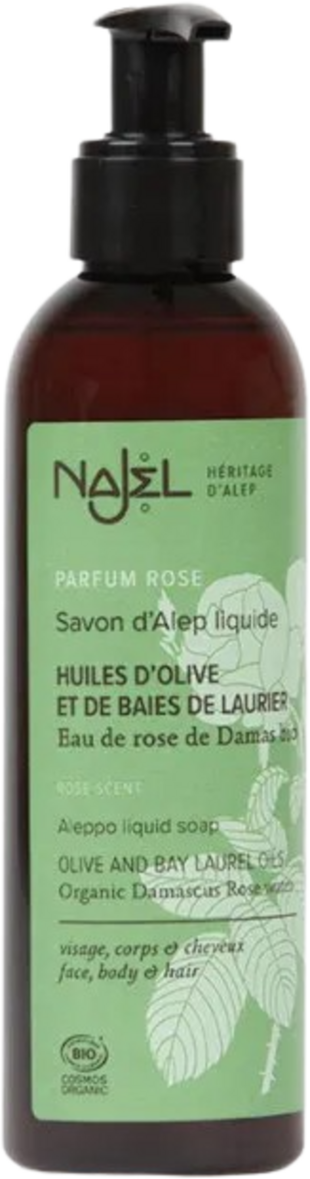 Najel Flytende Aleppo-såpe med damaskrose, 200 ml
