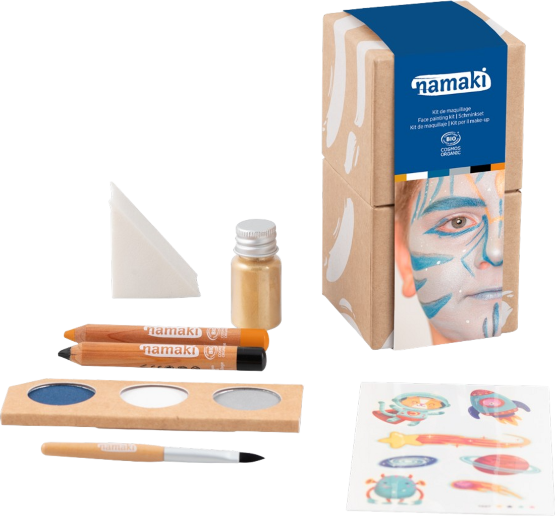 Med denne temaboksen kan du lage fantastisk galaktisk sminke og egne kreasjoner! Alt du trenger er inkludert, og alle produktene er testet og trygge for de små.