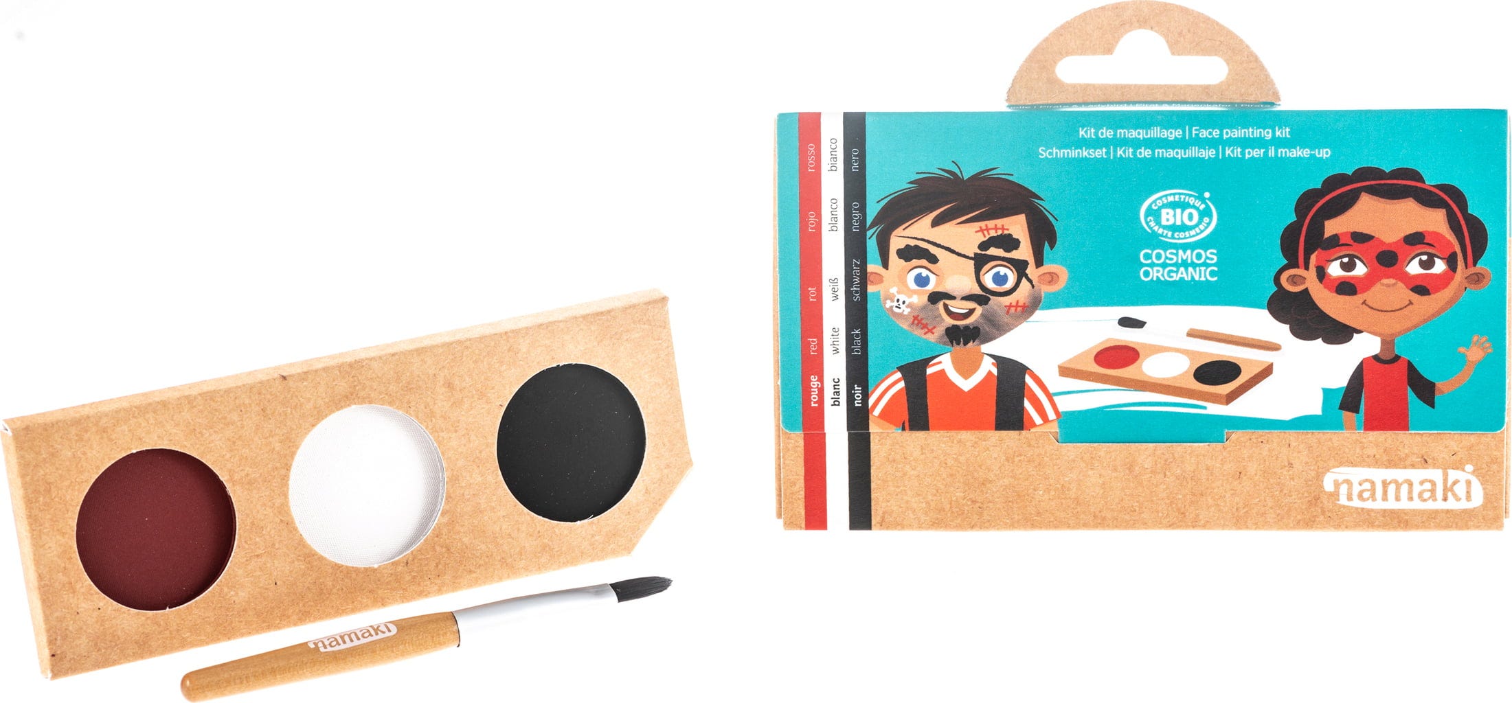 Med de tre fargene rød, hvit og svart kan de små ha det gøy og forvandle seg til sjørøvere eller marihøner. Helt uten skadelige ingredienser. I tillegg er sminken lett å vaske av igjen.