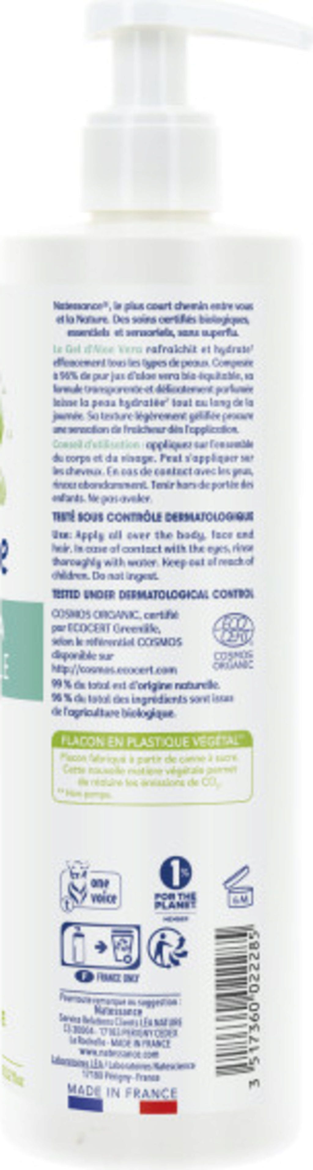 Aloe Vera-gelen fra Natessance gir allsidig pleie for hud og hår. Den har et spesielt høyt innhold av saft fra økologisk aloe vera-bladfilet og gir en lett, delikat duftende gel-tekstur som sikrer en behagelig friskhetsfølelse samtidig som den gir intens fuktighet.