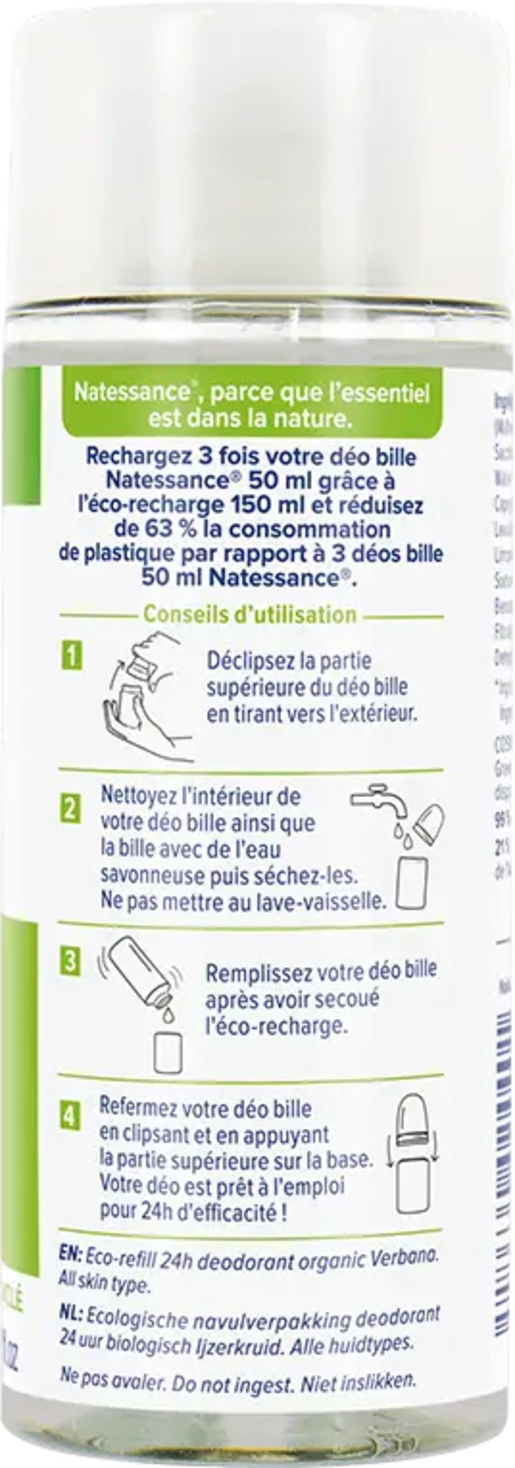 Natessance Deo Roll-on Verbena, Refill 150 ml