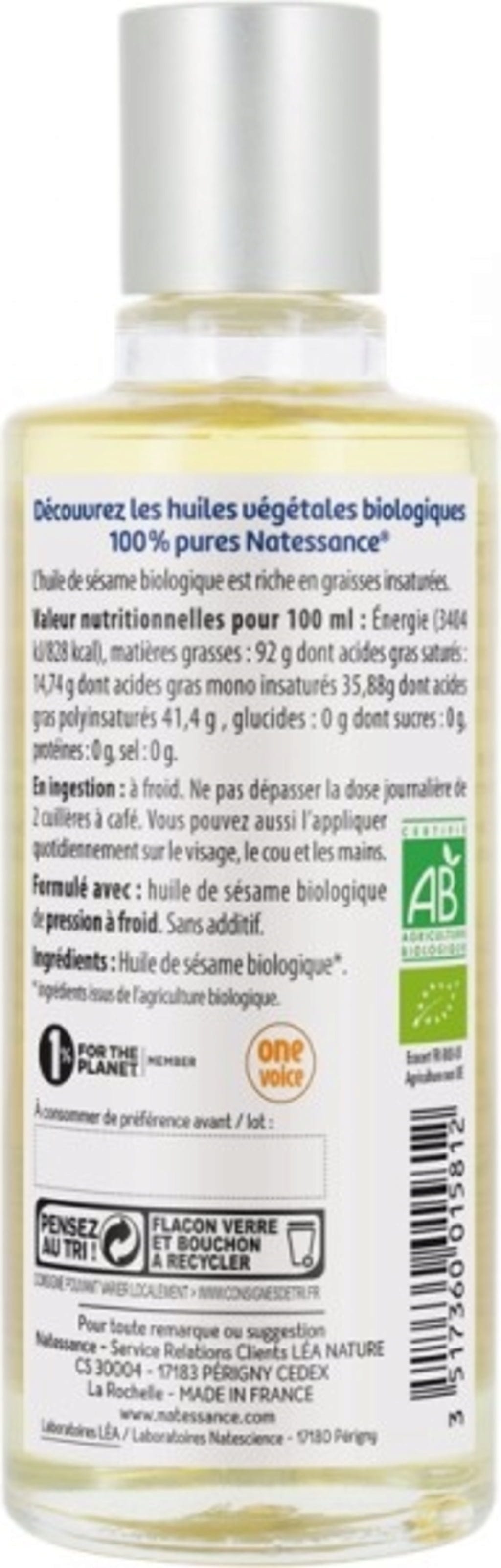 Natessance Økologisk sesamolje, 100 ml kr 74 (kr 740 / l)
