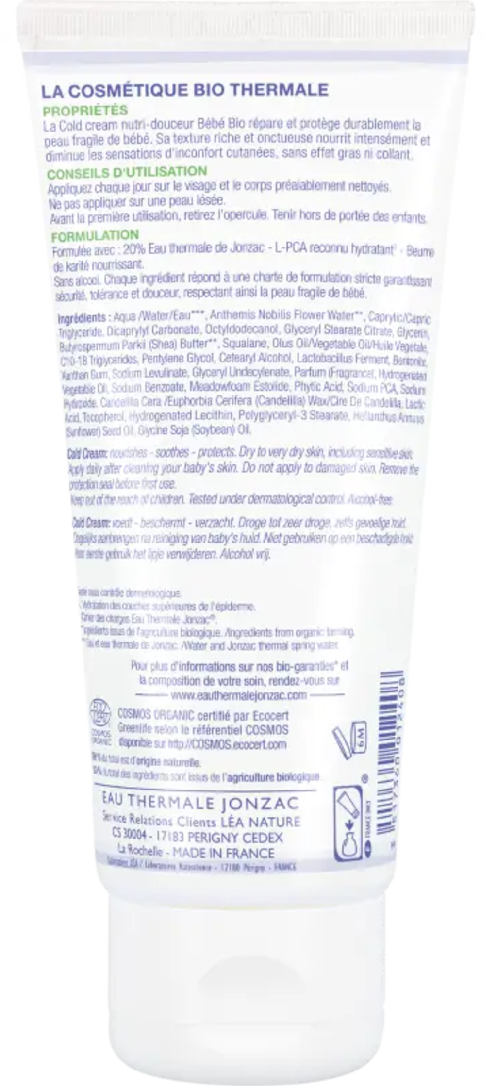 Denne kuldebeskyttende kremen gir intens næring og styrker beskyttelsesbarrieren for å bevare huden mot skadelige miljøfaktorer. Dens hypoallergene formel er rik på termalvann fra Jonzac samt L-PCA. Slik blir den sarte babyhuden optimalt beskyttet og tilført fuktighet.