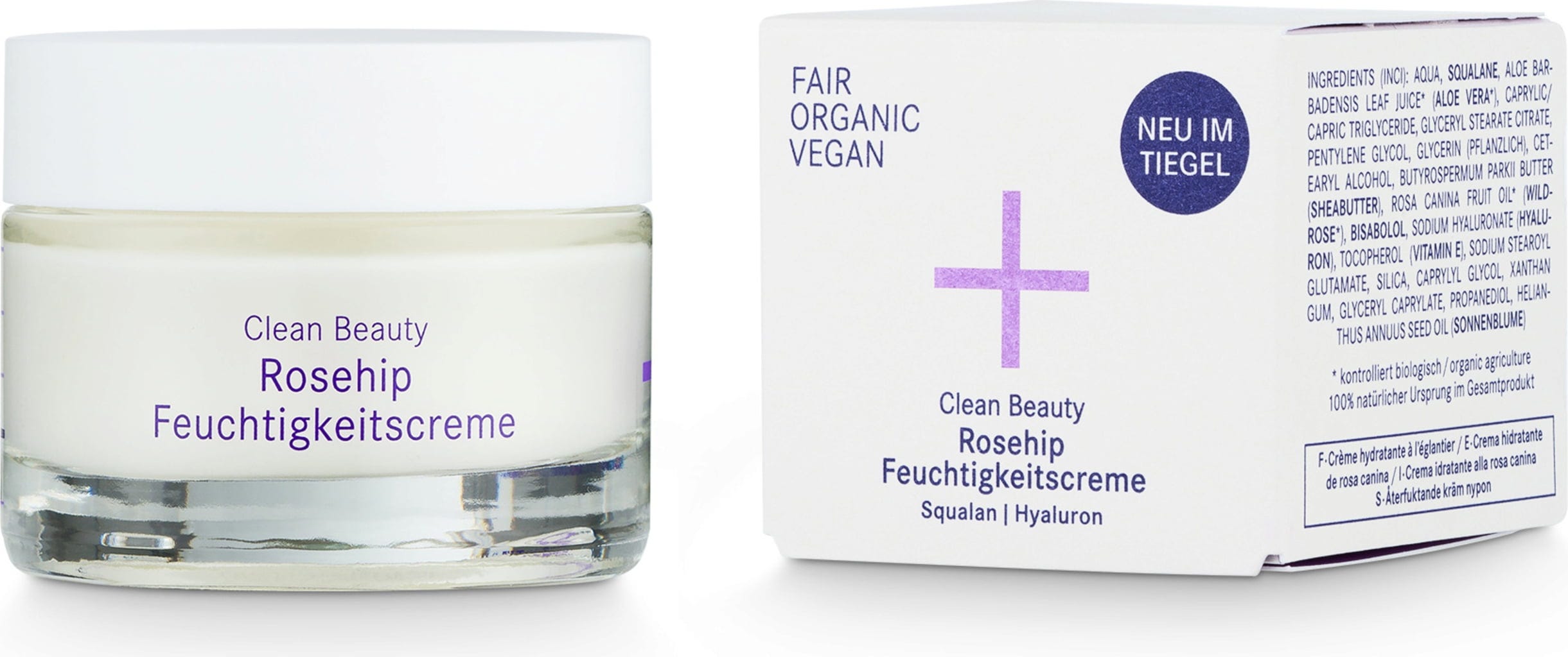 Aqua, Squalen, Aloe Barbadensis Leaf Juice[1], Caprylic/Capric Triglyceride, Glyceryl Stearat Citrat, Pentylene Glycol, Vegetable Glycerin, Cetearylalcohol, Butyrospermum Parkii (Shea) Butter, Rosa Canina Fruit Oil[1], Bisabolol, Sodium Hyaluronate, Tocopherol (Vitamin E), Sodium Stearoyl Glutamate, Silicia, Caprylyl Glycol, Xanthan Gum, Glyceryl Caprylate, Propandiol, Helianthus Annus (Sunflower) Seed Oil
