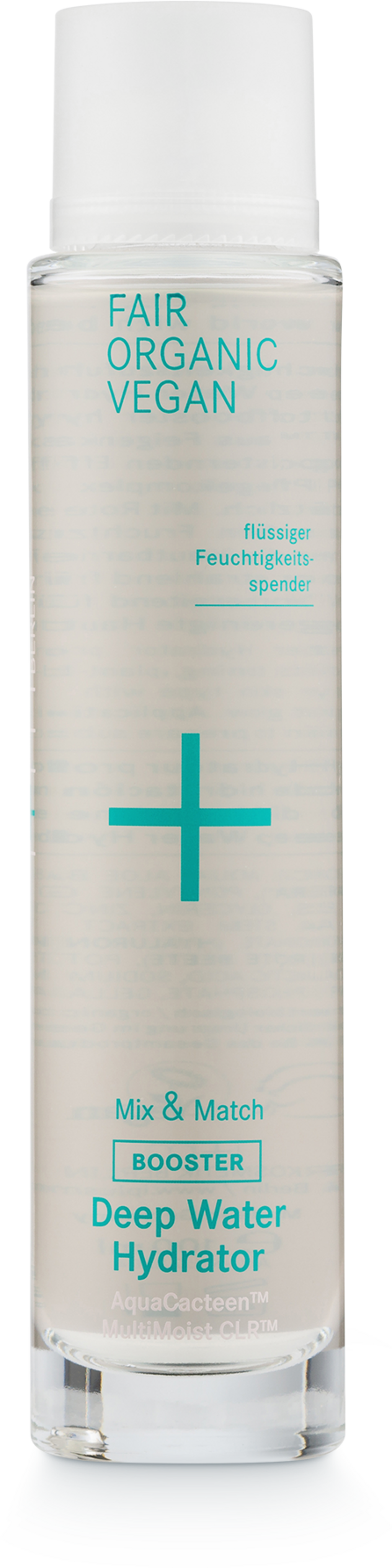 Deep Water Hydrator kombinerer en mildt tonende ansiktsspray med et styrkende pleiekonsentrat. Med AquaCacteen™ fra fikenkaktus og MultiMoist CLR™, et beskyttende kompleks av prebiotiske fruktsukker, bevarer huden fuktighetsreservene sine, og spensten støttes. Negative miljøpåvirkninger motvirkes effektivt, og du kan glede deg til en strålende og oppstrammet hud.