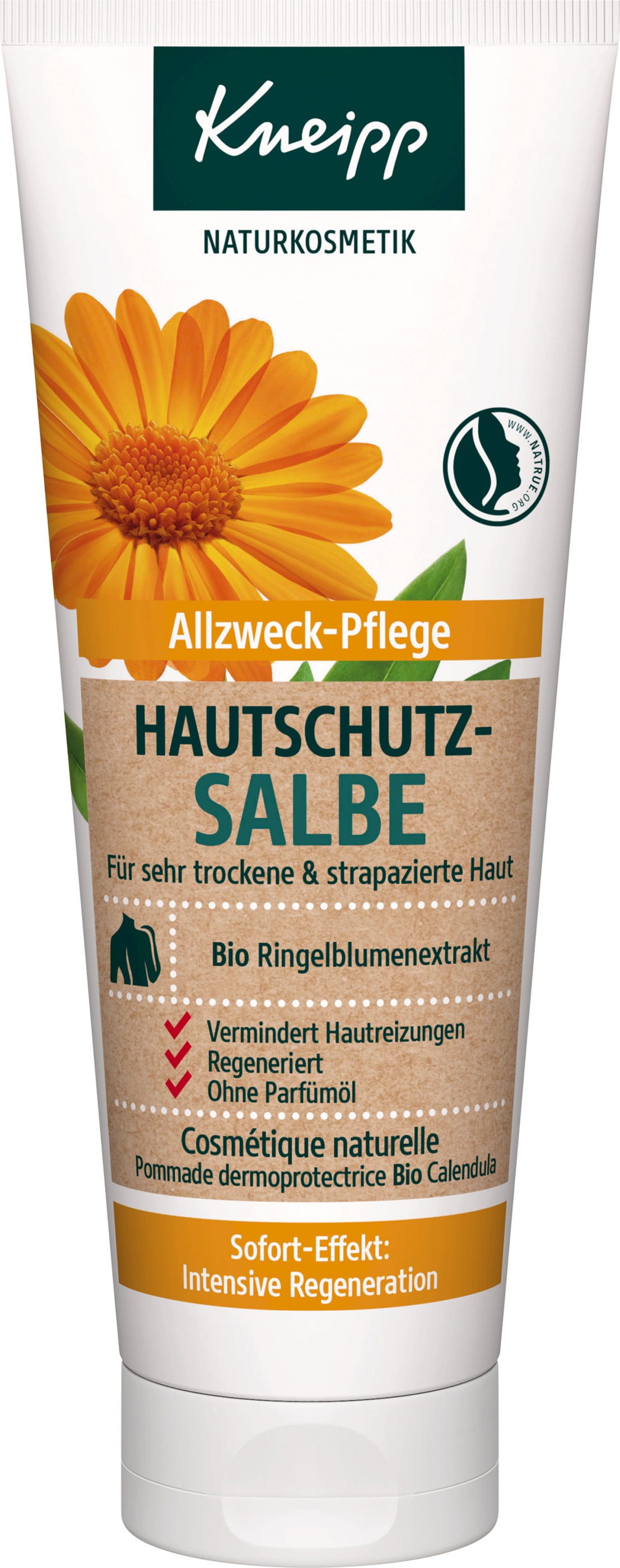Kneipp® Ringblomst hudbeskyttelsessalve er ideell for pleie og forebygging av svært sprukken, tørr, skjør og sensitiv hud. Den beskytter mot ytre påvirkninger som fuktighet, kulde, vind og tørr inneluft.