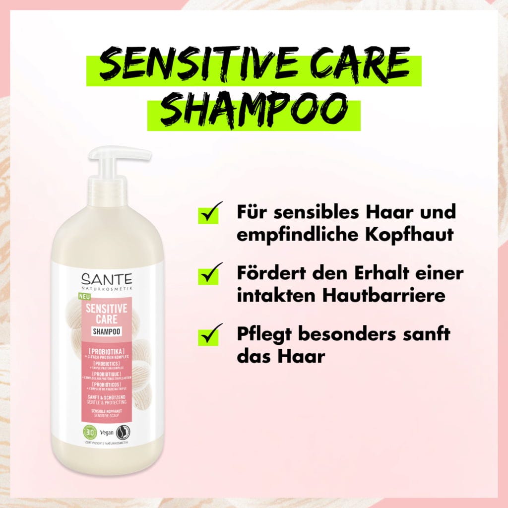 Den milde formuleringen av Sensitive Care Shampoo renser håret på en skånsom måte og støtter den sensitive hodebunnen med et tredobbelt proteinkompleks. De inneholdte probiotika støtter hudens naturlige pH-verdi og er ideell ved tørrhet og spenninger. Samtidig blir hårstrukturen tilført intensiv fuktighet og stråler av glans og smidighet.