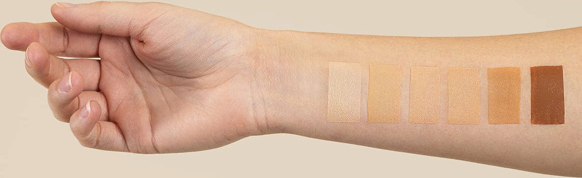 Aqua, Titanium Oxides, Zinc Oxide, Simmondsia Chinensis (Jojoba) Seed Oil[1], Argania Spinosa (Argan) Kernel Oil[1], Squalane (Olive Squalane), Glycerin, Oryza Sativa (Rice) Starch, Glyceryl Rosinate, Polyglyceryl-3 Polyricinoleate, Octyldodecanol, Sodium Chloride, Tocopherol (Vitamin E), Helianthus Annus (Sunflower) Seed Oil, Helianthus Annus Seed Cera[1], Caffeine, Ascorbyl Palmitate (Vitamin C), Aloe Barbadensis (Aloe Vera) Leaf Juice Powder[1], Sodium Hyaluronate, Polyglyceryl-3 Diisostearate, Glyceryl Caprate, Kan inneholde (+/-)[ CI 77491 (Iron Oxide), CI 77492 (Iron Oxide), CI 77499 (Iron Oxide)]