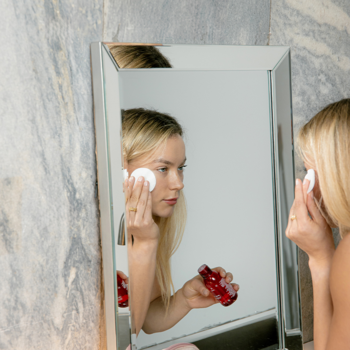 - Påfør en liten mengde på en bomullspad og rengjør ansiktet grundig.