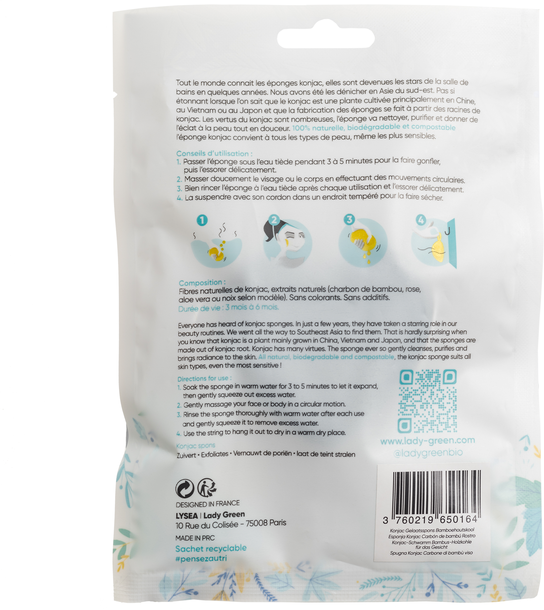 Konjac-svampen med bambuskull er den ideelle rengjøringen for ung hud som har tendens til urenheter og fet hud. Takket være tilsetningen av denne spesielle kullet har den talgregulerende egenskaper og renser skånsomt, men effektivt, og gir en strålende hud.
