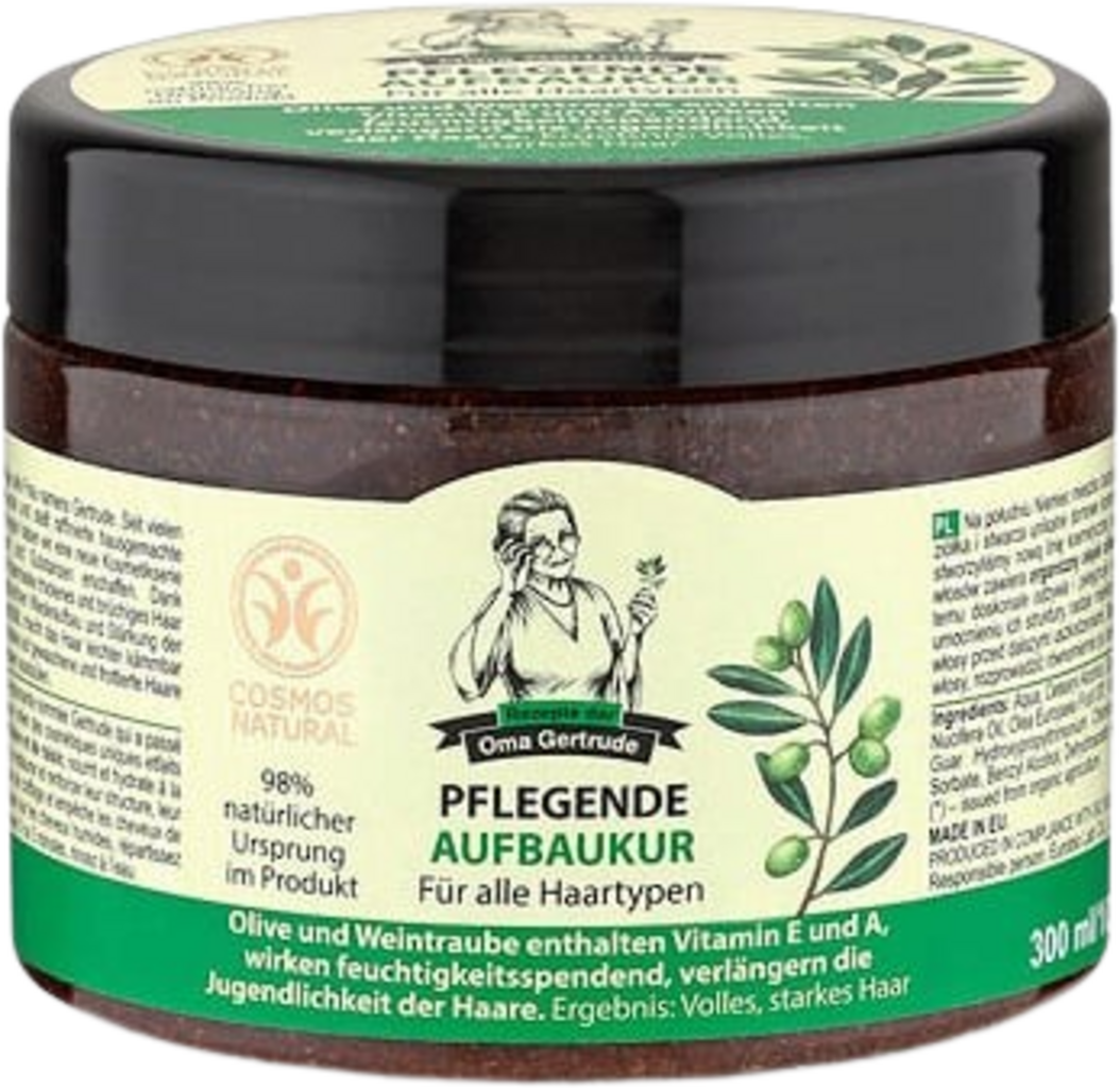Denne oppbyggende masken inneholder naturlige ingredienser som, i samspill, gir optimal pleie og næring til tørt og slitt hår. Produktet har regenererende og strukturforsterkende egenskaper som gir håret smidighet og elastisitet. Dette gjør håret lettere å gre og beskytter det mot brudd. Hårmasken inneholder olivenolje, som er rik på vitamin A, D, E og K, samt 16 aminosyrer som er essensielle for hud og hår. Druekjerneolje gir en rekke næringsstoffer som vitamin B, C og PP, proteiner og fettsyrer, som bidrar til å revitalisere hårstrukturen og gi håret en silkeaktig myk tekstur.