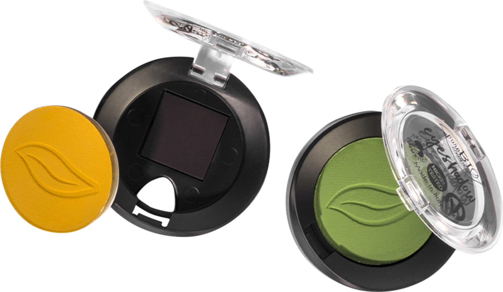 Hver øyenskygge har en magnetisk bunn designet for modulær plassering i påfyllingspalettene fra PuroBIO Cosmetics.
