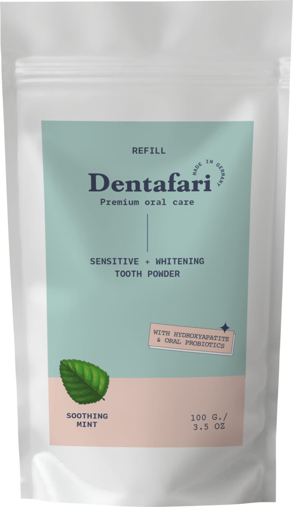 Dentafari Sensitive & Whitening Tannpulver Soothing Mint, 100 g