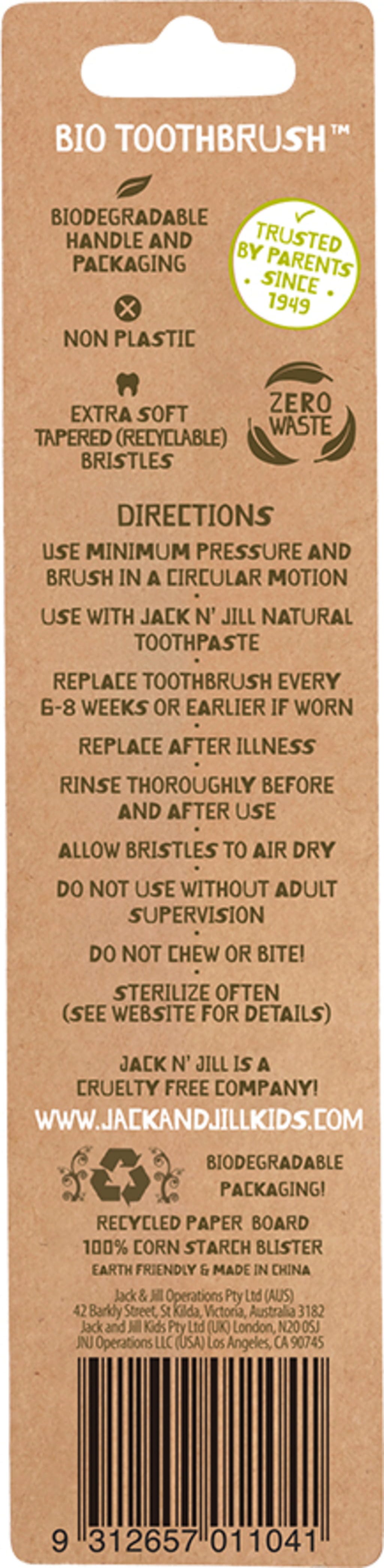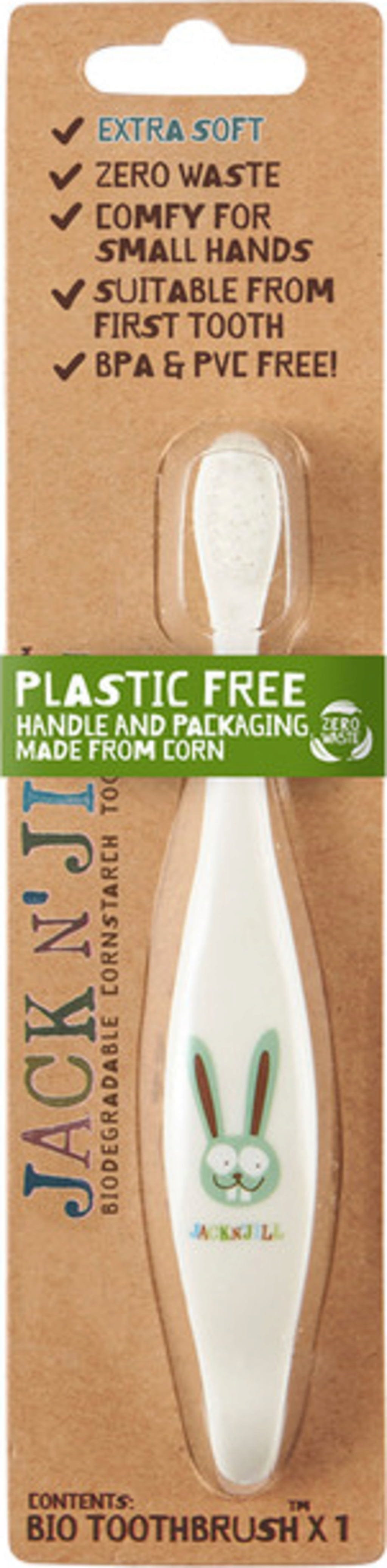 Med denne søte og funksjonelle barnetannbørsten har Jack N Jill laget en absolutt innovasjon: Skaftet på denne økologiske tannbørsten er laget av ren og GMO-fri maisstivelse, og børstehodet er produsert av resirkulerbart DuPont-nylon. Produktet forener miljøvern med et barnevennlig design. Tilbyr morsom tannpuss fra første tann!