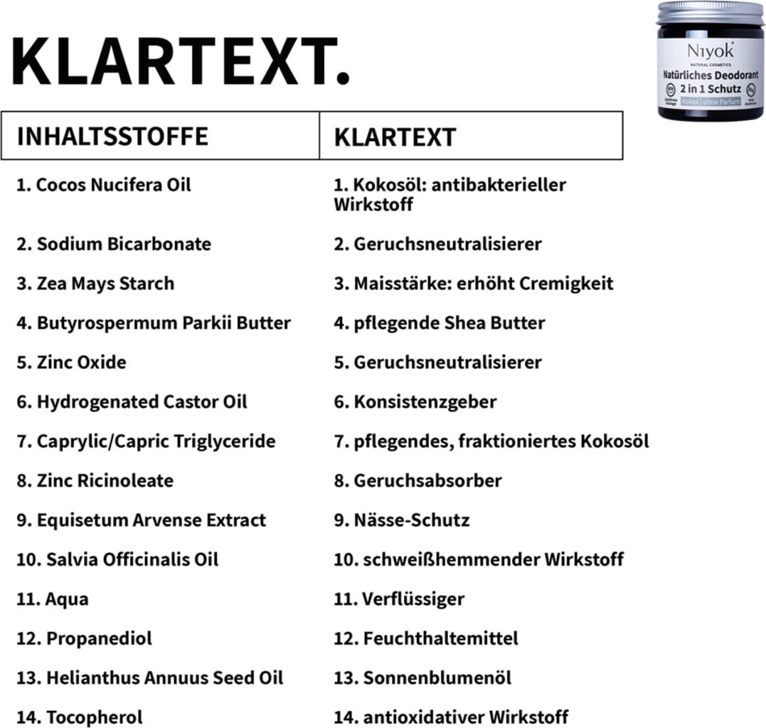 Niyok 2-i-1 Deo & Antiperspirant Kokos uten parfyme, 40 ml