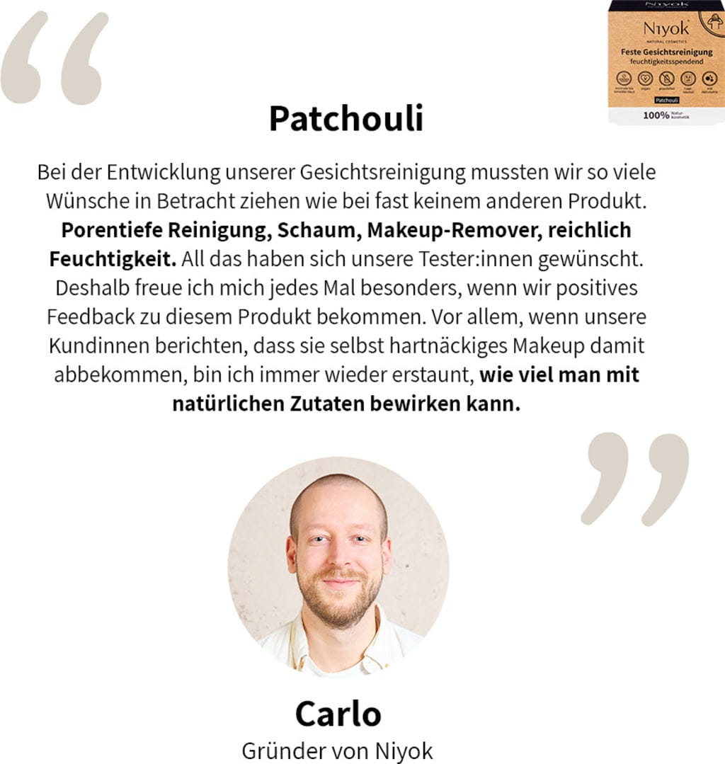 anmeldelser på norsk for Niyok Fast ansiktsrens Patchouli