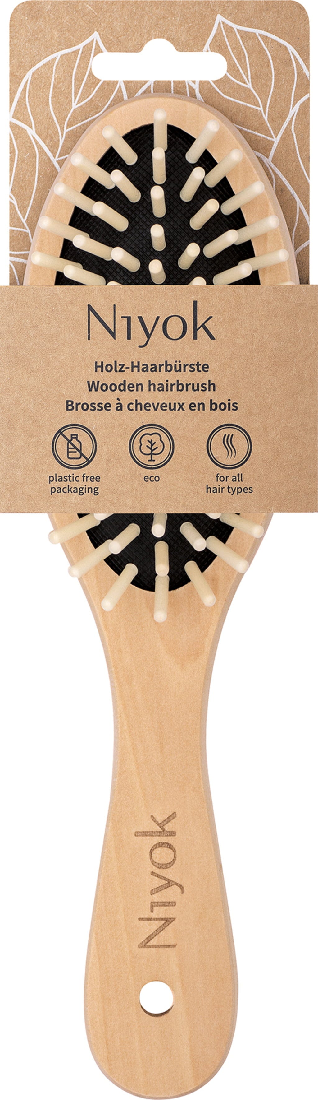 Børstehårene og knottene er laget av tre og løser opp floker skånsomt. Samtidig masseres hodebunnen ved hver børstebevegelse, noe som gjør børstingen til et ekte velvære-øyeblikk. Den er en sammensmeltning av pleie og styling, som gir glansfullt, smidig hår. Takket være det ergonomiske grepet ligger børsten godt i hånden og kan lett føres gjennom håret.