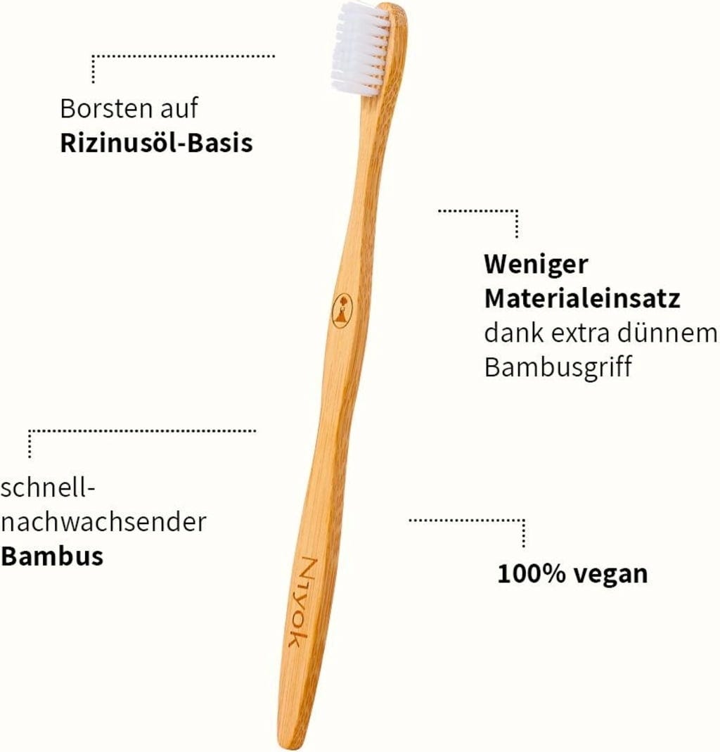 Selve tannbørsten er laget av bærekraftig bambus og har borster basert på ricinusolje med middels hardhet. Dette gjør hele produktet vegansk og bidrar også til å redusere avfall. Når tannbørsten har gjort sitt, knekker du bare av hodet og kaster det i restavfallet. Skaftet kan derimot kastes i det organiske avfallet.