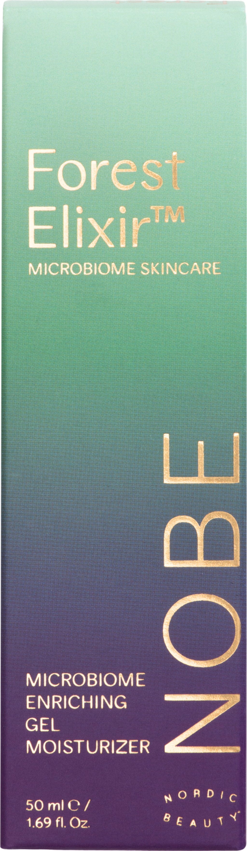 NOBE's Forest Elixir® Microbiome Enriching Gel Moisturizer baserer seg på et innovativt skogmikrobiom-ekstrakt utviklet i Finland, som understøtter hudens mikrobiom. Det er utvunnet fra fornybare kilder og gjenskaper hudens naturlige balanse, styrker hudbarrieren og forbedrer hudens regenerasjon. Skogekstrakten minimerer også irritasjoner og øker produksjonen av anti-aging-kollagen. Fuktighetskremen inneholder dessuten hudidentiske ingredienser som squalan og sodium PCA som tilfører huden fuktighet, støtter barrierefunksjonen, og gjør den myk. Dette gir raskt en balansert og strålende hud.
