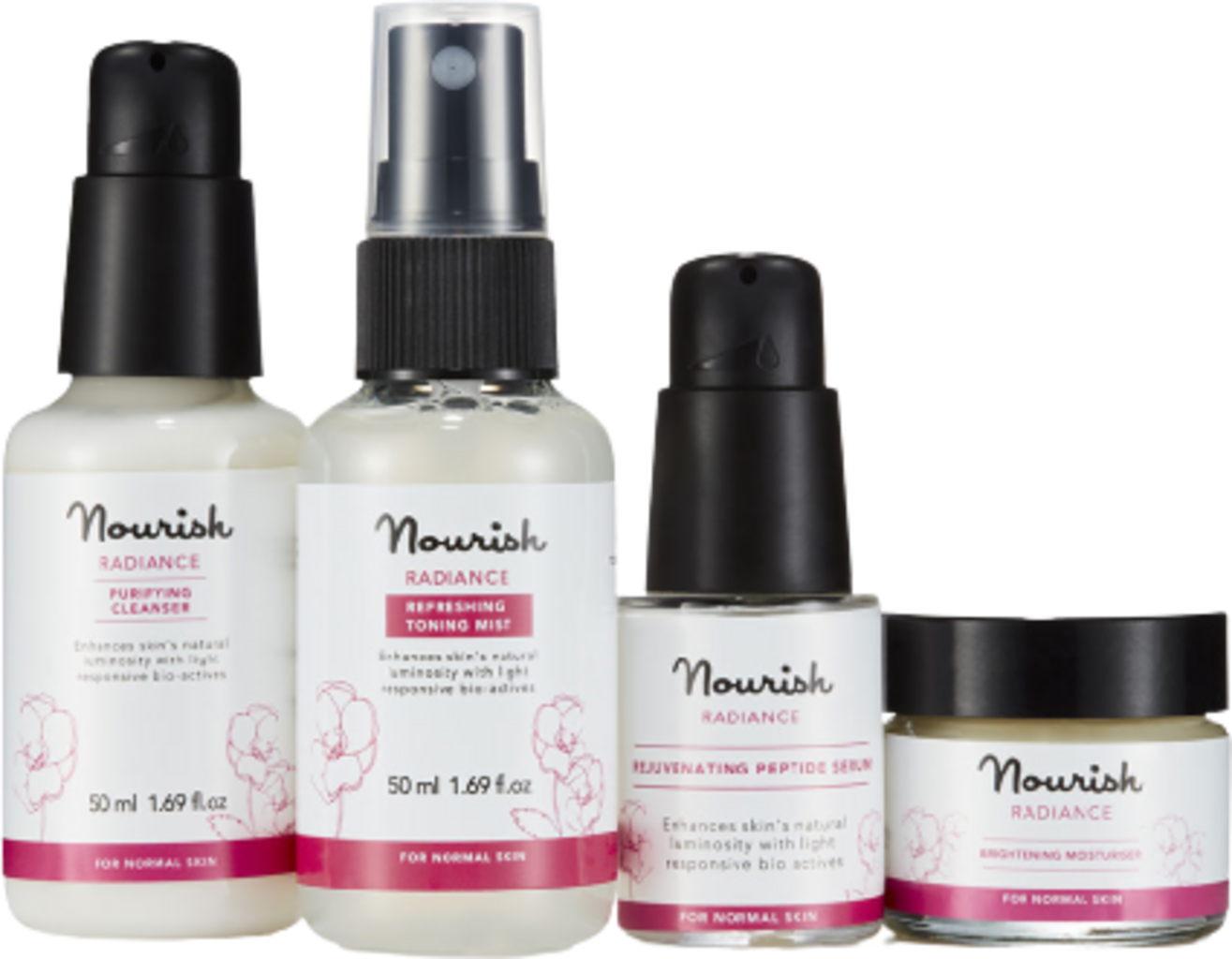 • Radiance Refreshing Toning Mist (50 ml): Poreforfinerende toner med bioaktive stoffer og lett toniserende effekt.