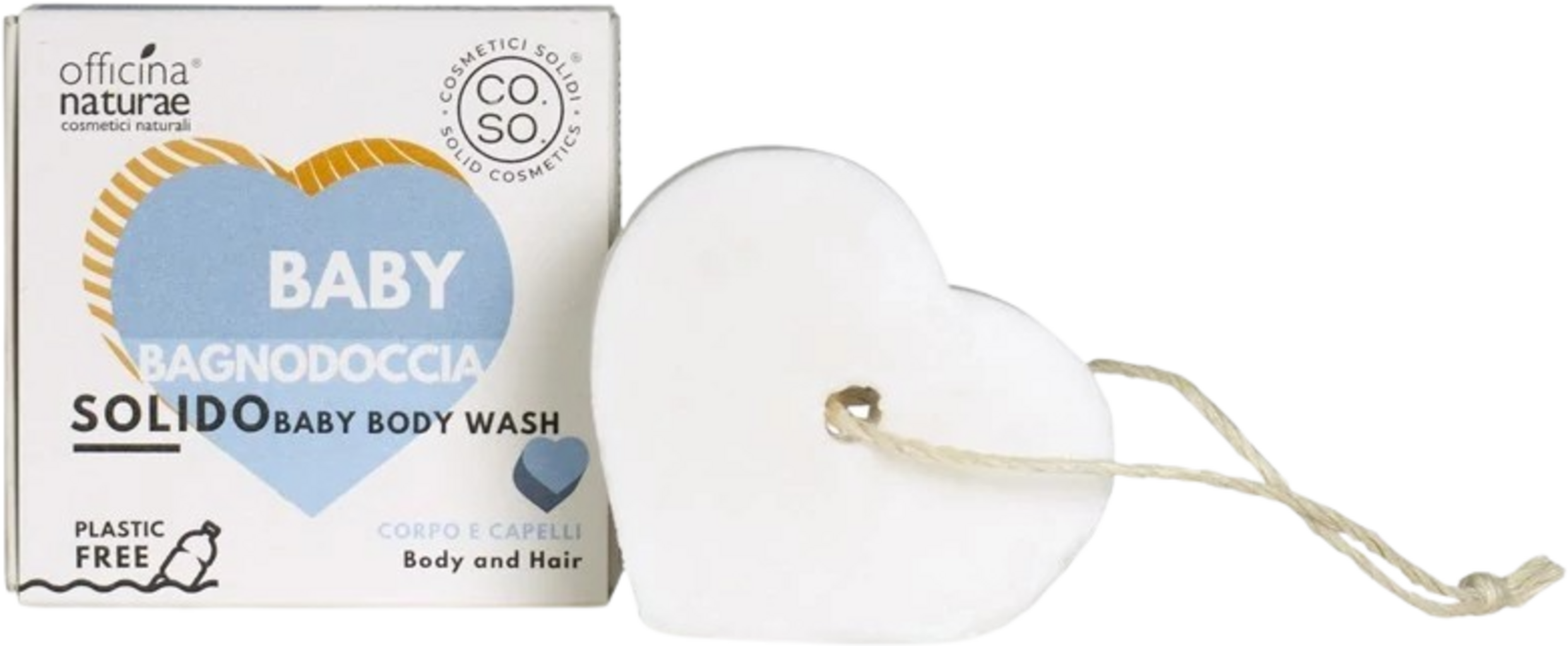 Denne hjerteformede såpen for kropp og hår er spesielt utviklet for barns sensitive hud. Den er spesielt skånsom og rengjør med et mykt skum som er ytterst mildt. Takket være nøye utvalgte økologiske ekstrakter av kvitten, ringblomst og kattost, har den mykgjørende, pleiende og beroligende egenskaper. Den myke hampetråden er særdeles praktisk for å henge opp såpen til tørk etter bruk.