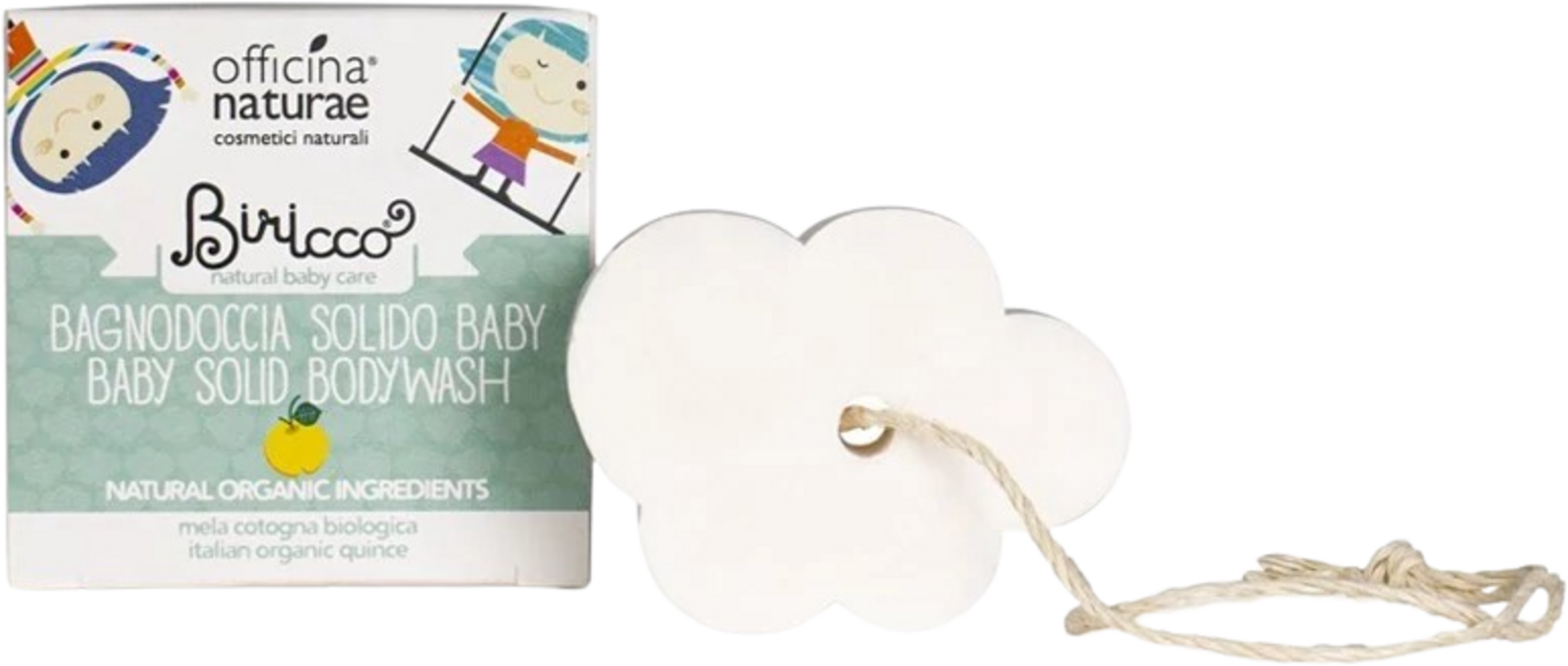 Det faste dusjbadeproduktet fra Biricco er et usedvanlig mildt og vannfritt alternativ til konvensjonelle rengjøringsgeler og sjampoer. Det gir et mykt skum som renser skånsomt. Økologiske ekstrakter av kvede, kattost og ringblomst pleier, beroliger og gir mykhet.
