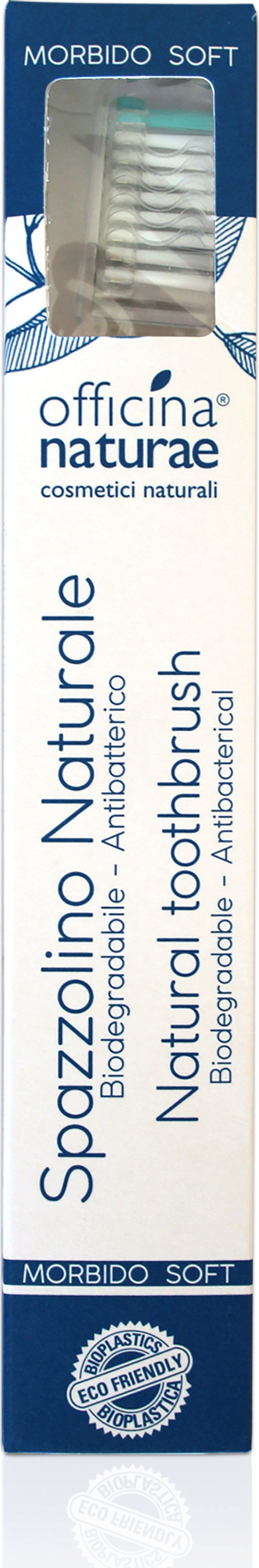 Den bærekraftige tannbørsten fra Officina Naturae renser tennene optimalt ved daglig munnpleie. Børstekroppen er laget av bio-plast - produsert av trepulver - og de ytre, hvite børstene er laget av ricinusolje. Disse er spesielt myke, slik at de ikke skader emaljen og er skånsomme mot tannkjøttet. De sentrale børstene er laget av nylon og er impregnert med sølvpartikler gjennom en innovativ prosess. Dette gir tannbørsten sine selvrensende egenskaper gjennom hele levetiden, noe som gjør den spesielt hygienisk.