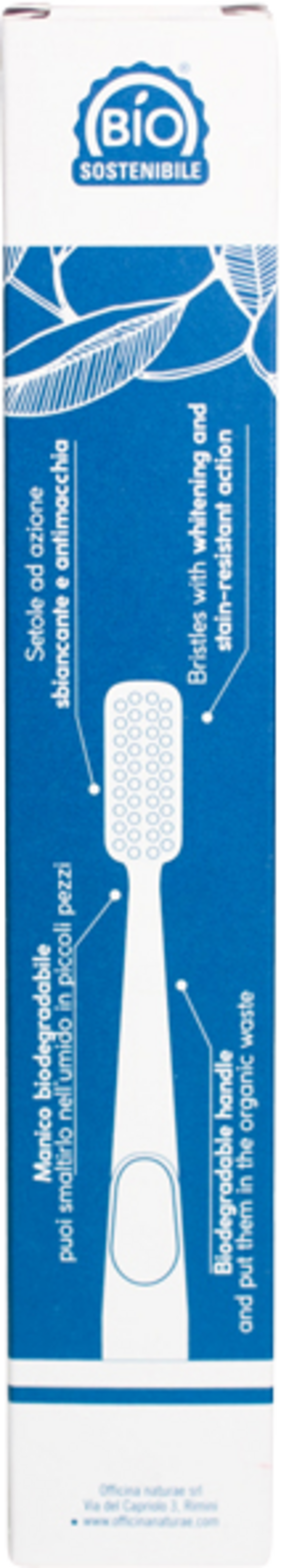 Dette bærekraftige tannbørsten gjør tennene dine ekstra hvite og gir deg ditt vakreste smil. Det spesielle med denne tannbørsten er busten. De er nemlig belagt med kalsiumkarbonat, et materiale som lysner tennene skånsomt og naturlig. Den middels harde busten sikrer også at plakk og tannstein fjernes. Håndtaket er laget av bærekraftig bioplast.