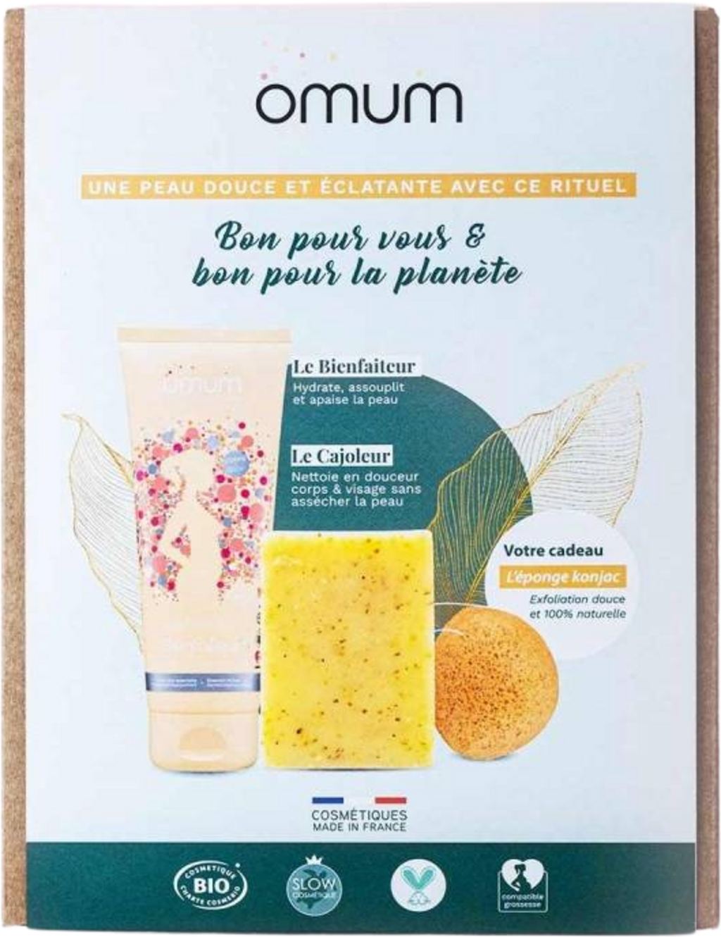 Dette gavesettet inneholder sanselige og nøye utviklede kosmetikk for den daglige skjønnhetsrutinen til kommende mødre. Sammen gir de en myk, strålende hud. Le Cajoleur er en kaldprosessert og fuktighetsgivende såpe som gir et lett skum og skånsom rengjøring uten å tørke ut huden. Den inkluderende, komposterbare konjac-svampen er beriket med leire og tilbyr en skånsom peeling. For etterfølgende pleie passer Le Cajoleur best. Den fuktighetsgivende kroppsmelken har nærende og mykgjørende egenskaper, og etterlater huden fløyelsmyk og hydrert.