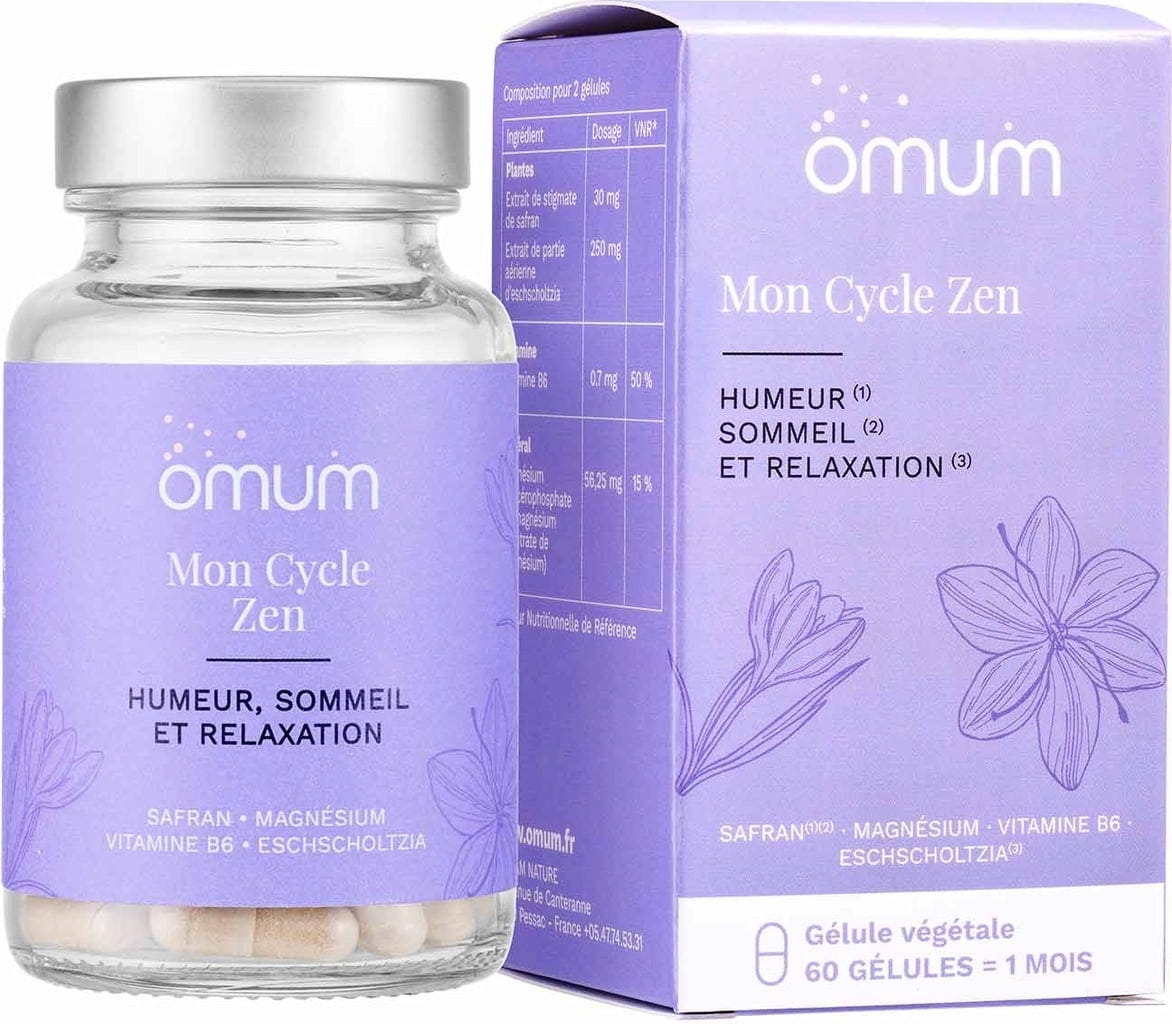 Formulert med safran, kalifornisk valmue, vitamin B6 og magnesium er Mon Cycle Zen ideell under menstruasjonen.