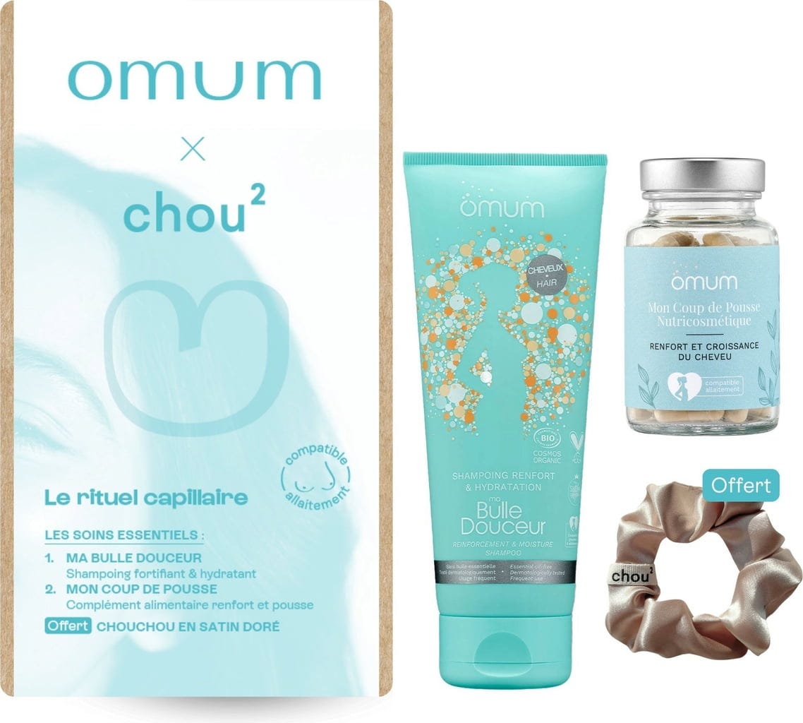 Dette hårpleiesettet er perfekt for kommende mødre! Det inneholder en sjampo som er spesielt utviklet for å møte behovene under hormonelle endringer og fysiske forandringer hos gravide. Kosttilskuddet Mon Coup de Pousse er den ideelle tilleggskomponenten. Settet avrundes med en høy kvalitet satin-scrunchie fra chou².