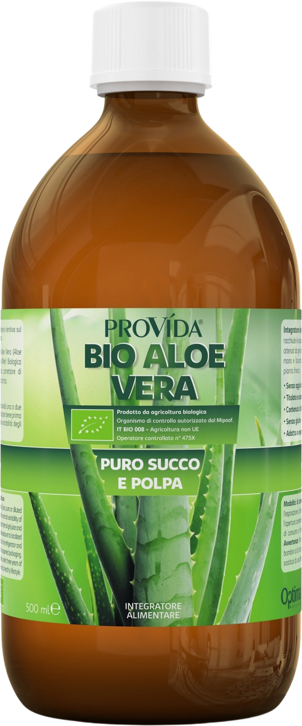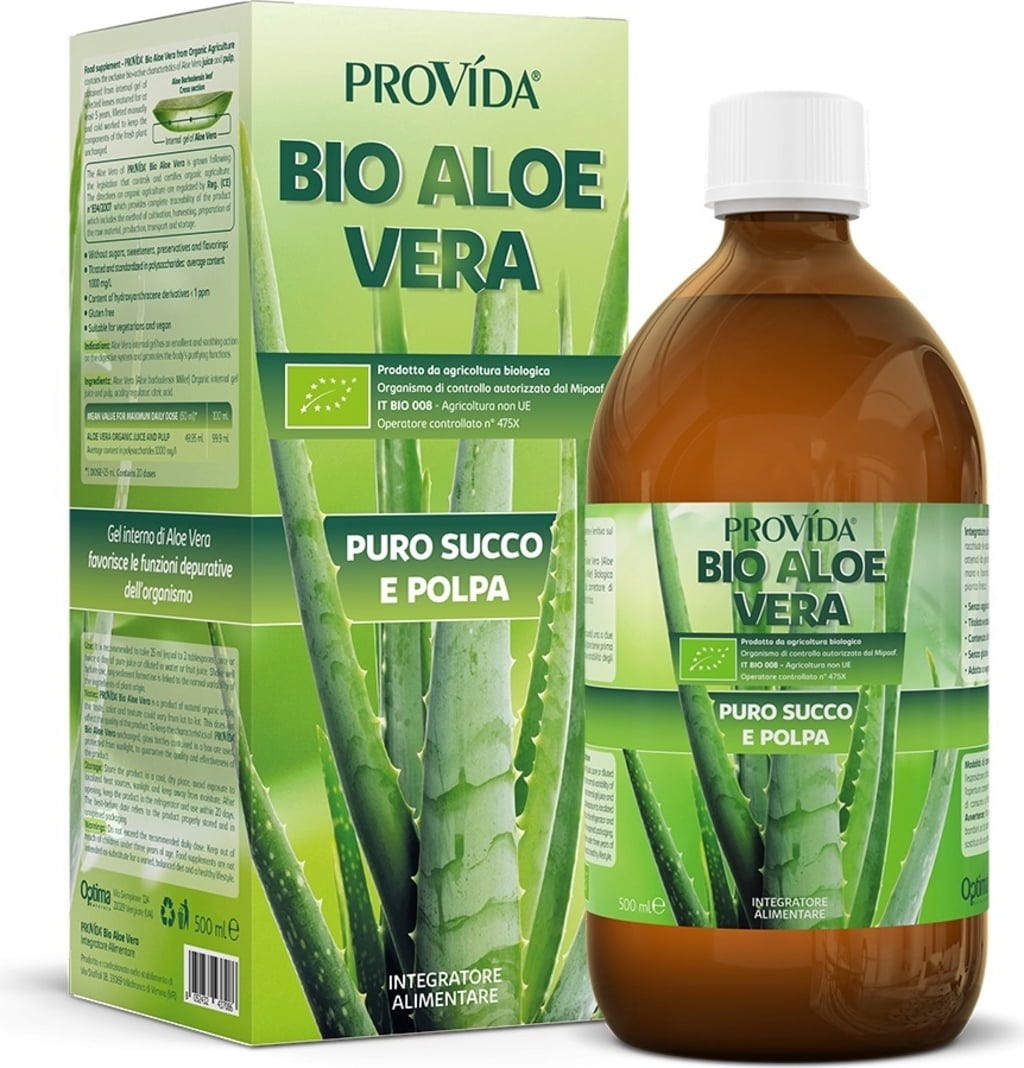 Optima Naturals Provida Bio-Aloe Vera-juice med fruktkjøtt, 500 ml