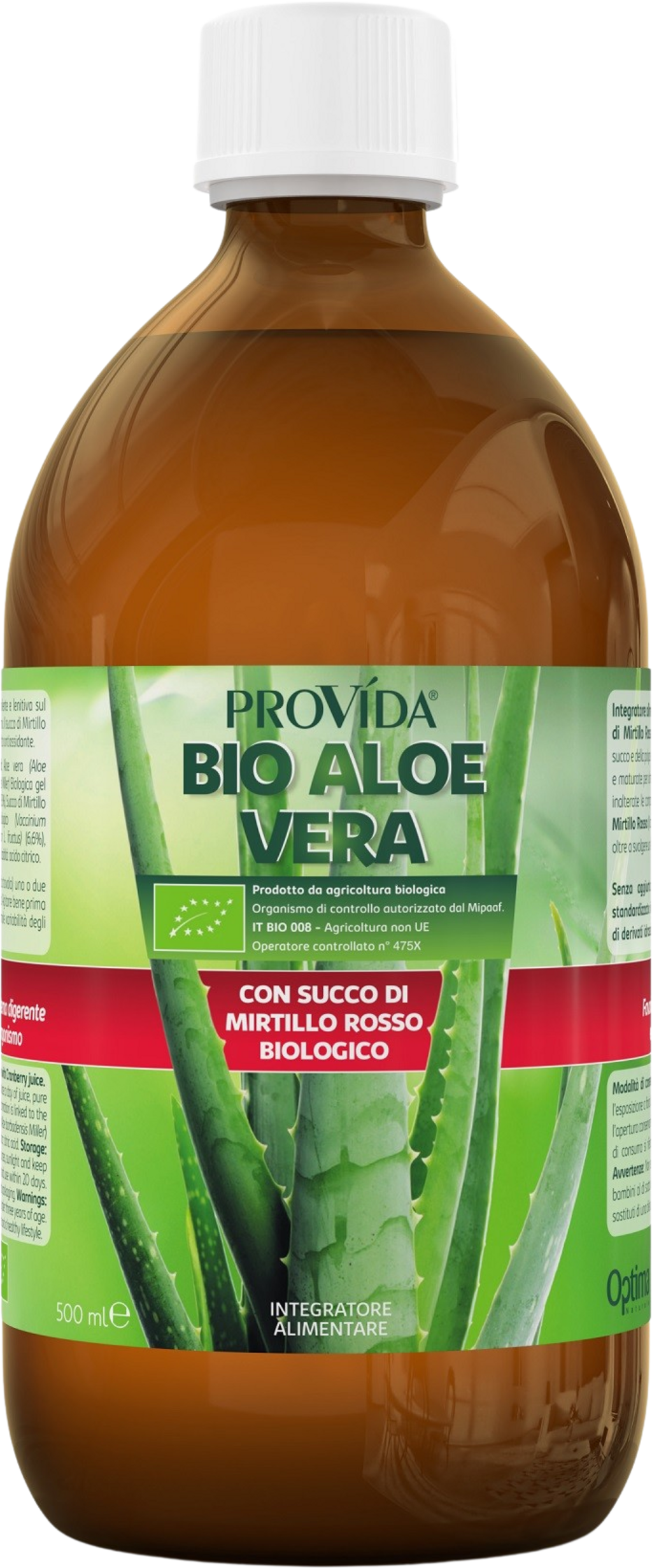 Optima Naturals Provida Bio-Aloe Vera-juice med tranebær, 500 ml