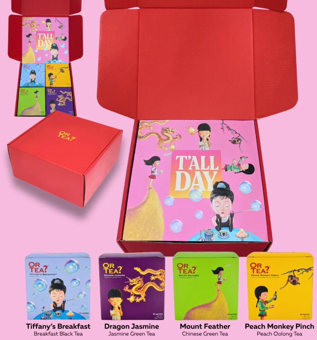 Én boks. Fire blandinger. Te for hele dagen. Gavesettet T'ALL DAY er nøye utvalgt for å gi den perfekte teopplevelsen fra morgen til kveld. Uansett hva dagen bringer, inneholder denne boksen alltid den ideelle blandingen for øyeblikket.