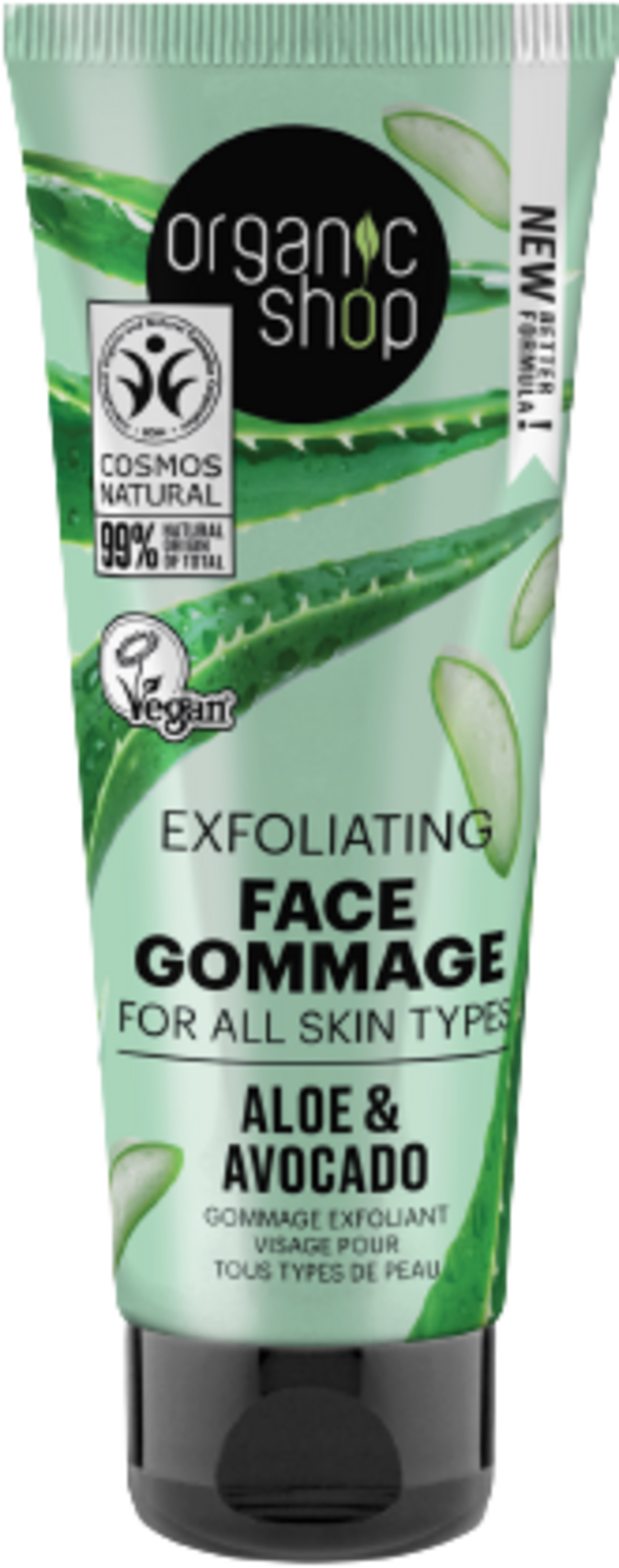 Organic Shop Eksfolierende Ansiktsskrubb Aloe & Avocado, 75 ml kr 53 (kr 707 / l)
