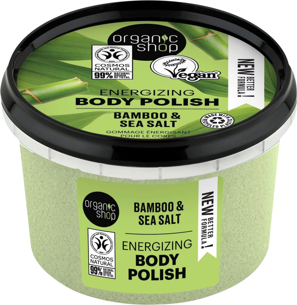 Organic Shop Energigivende kroppskrubb med bambus og havsalt, 250 ml