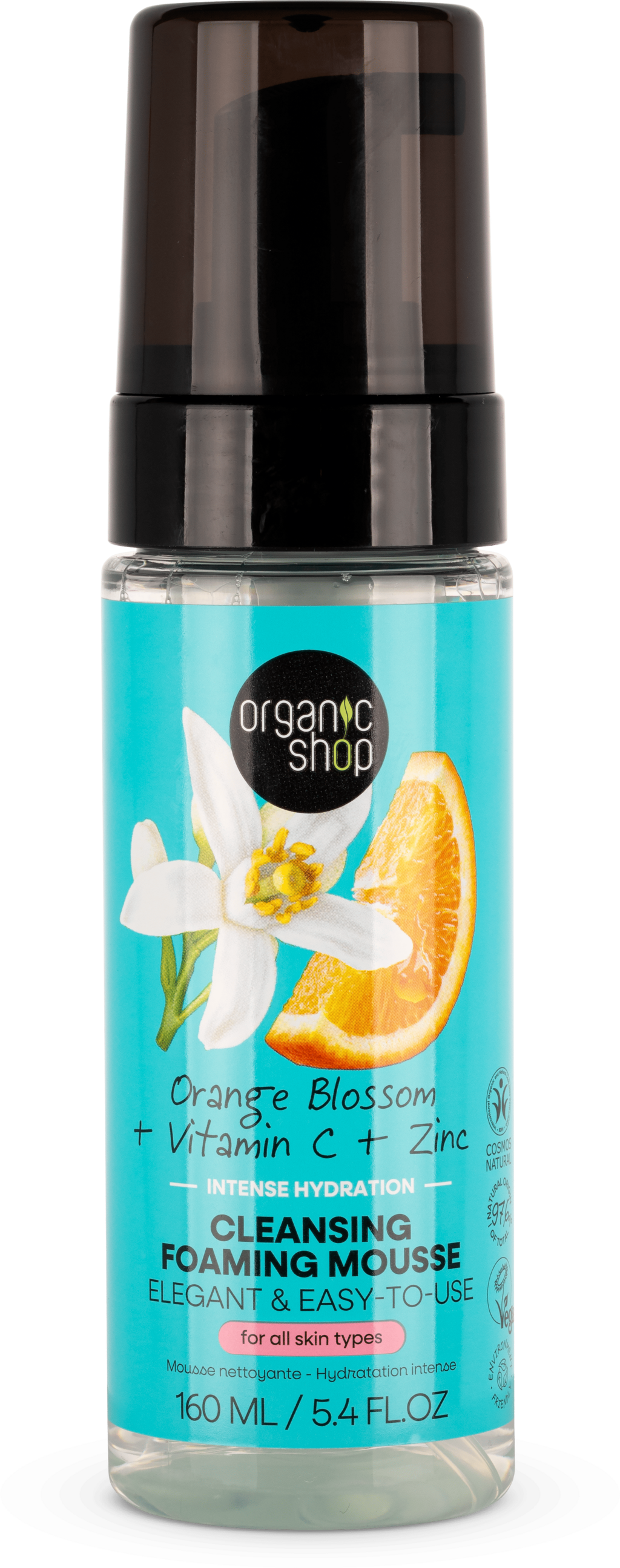 Organic Shop Rensende skummende mousse appelsinblomst, 160 ml