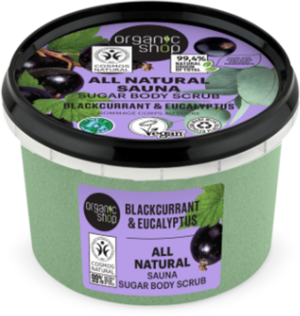 Organic Shop Sauna Sugar Body Scrub Solbær & Eukalyptus, 250 ml