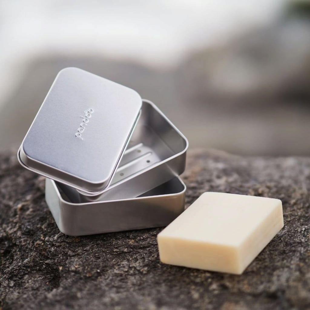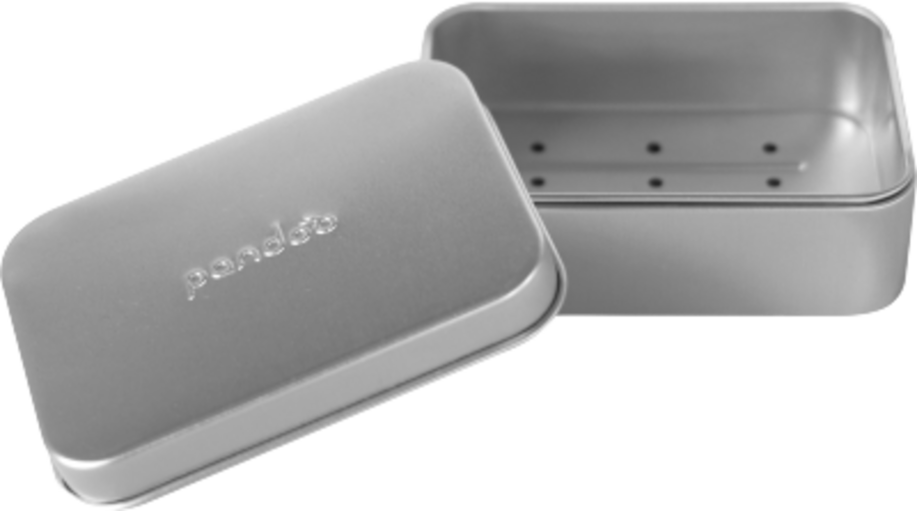 Den rustfrie aluminiumsboksen fra pandoo er en tidløst vakker følgesvenn som ideelt oppbevarer såpene dine. Skålen har en uttakbar sil som lar vannet renne bedre av, noe som øker såpens levetid. Det minimalistiske formatet er perfekt for reisende og garanterer en sikker transport av såpene dine.